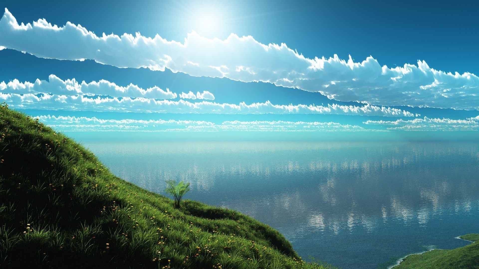 Gökyüzünün arka planında okyanusun resmine sahip manzara