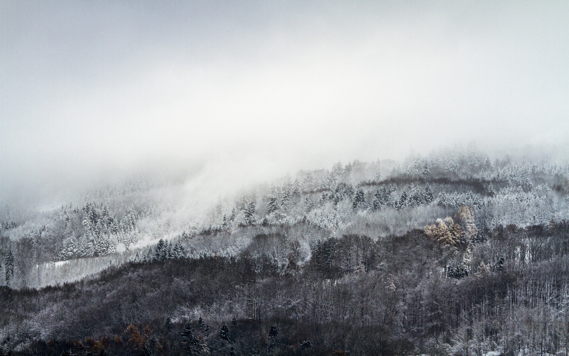 Dağları, ormanları ve bulutları tasvir eden manzara