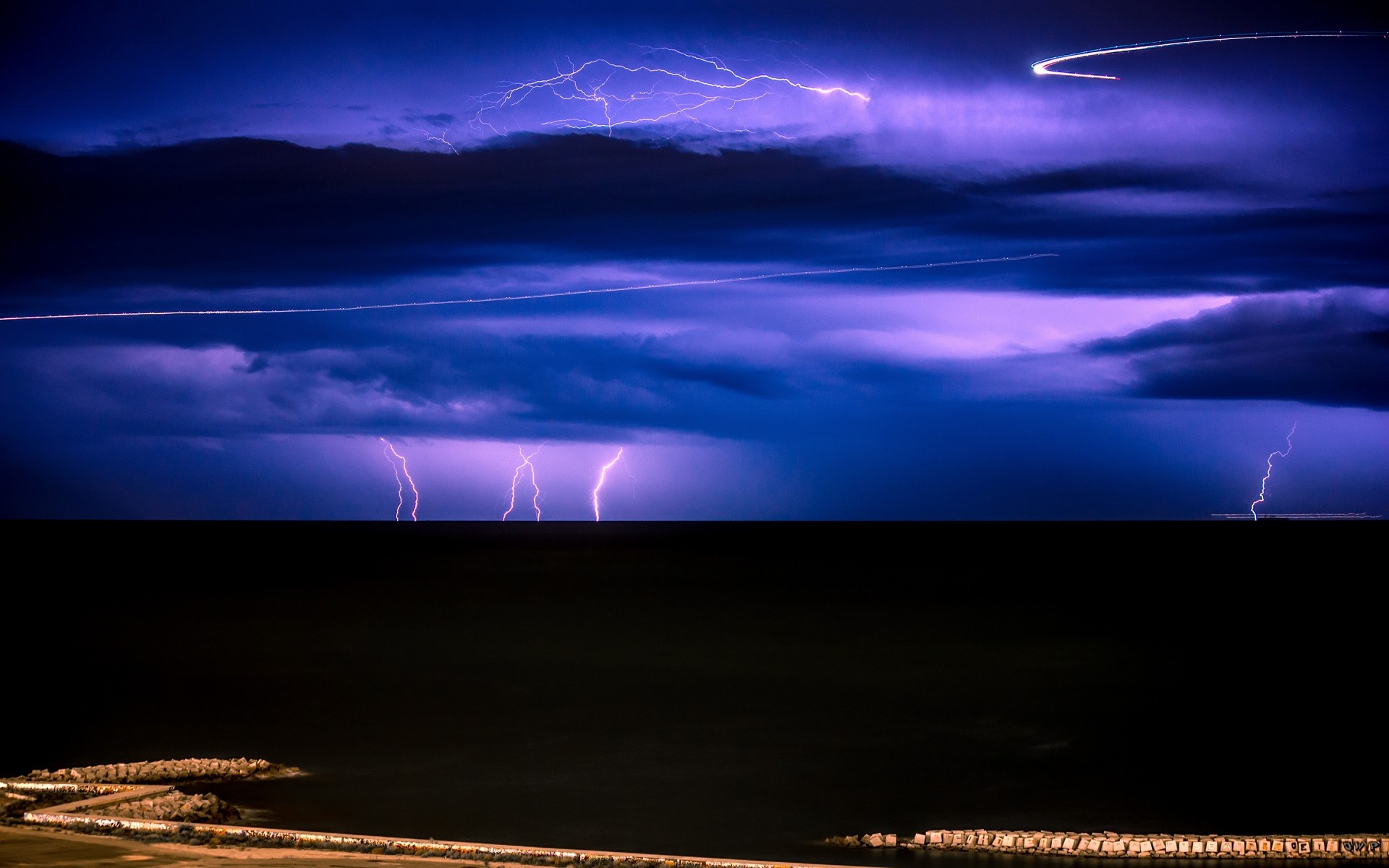 Gün batımı ve okyanusa sahip bir gökyüzüne sahip güzel bir manzara