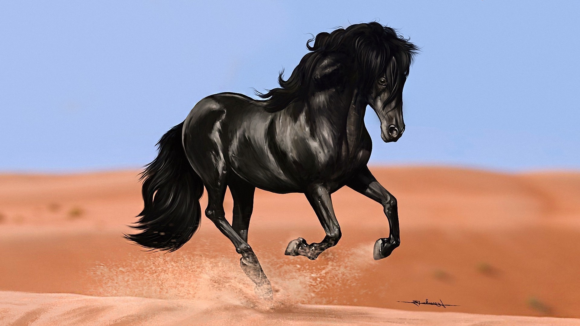 Siyah aygır denize doğru atlıyor