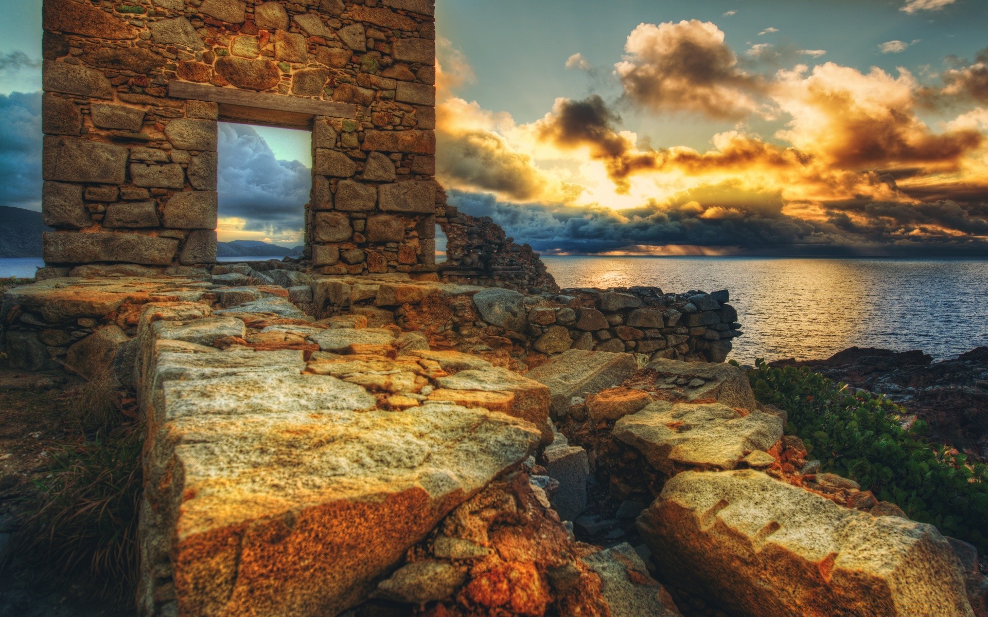 Uzaktaki mavi dağlar, ön planda kırmızı kayalar