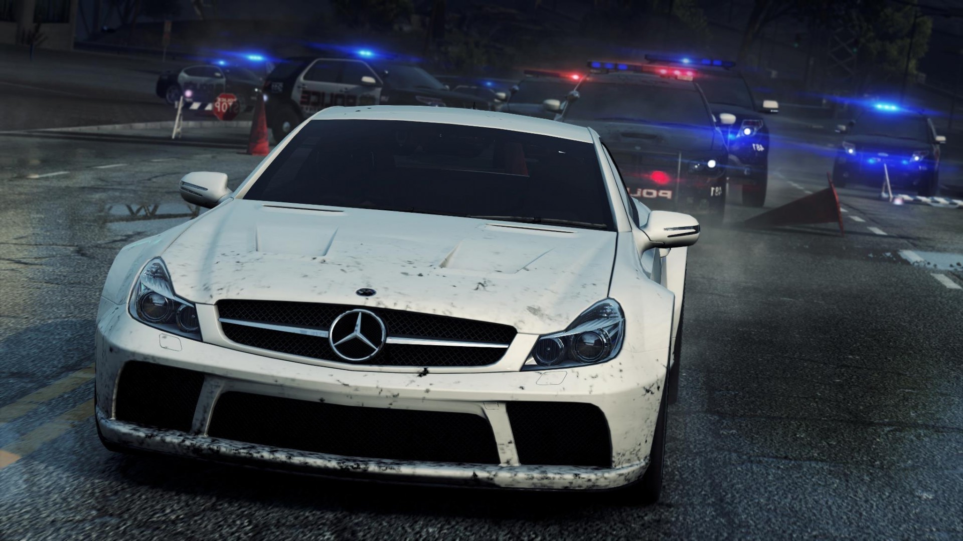 Ulaşım sisteminin gece ışıklarının fln'sinde beyaz spor Mercedes'i