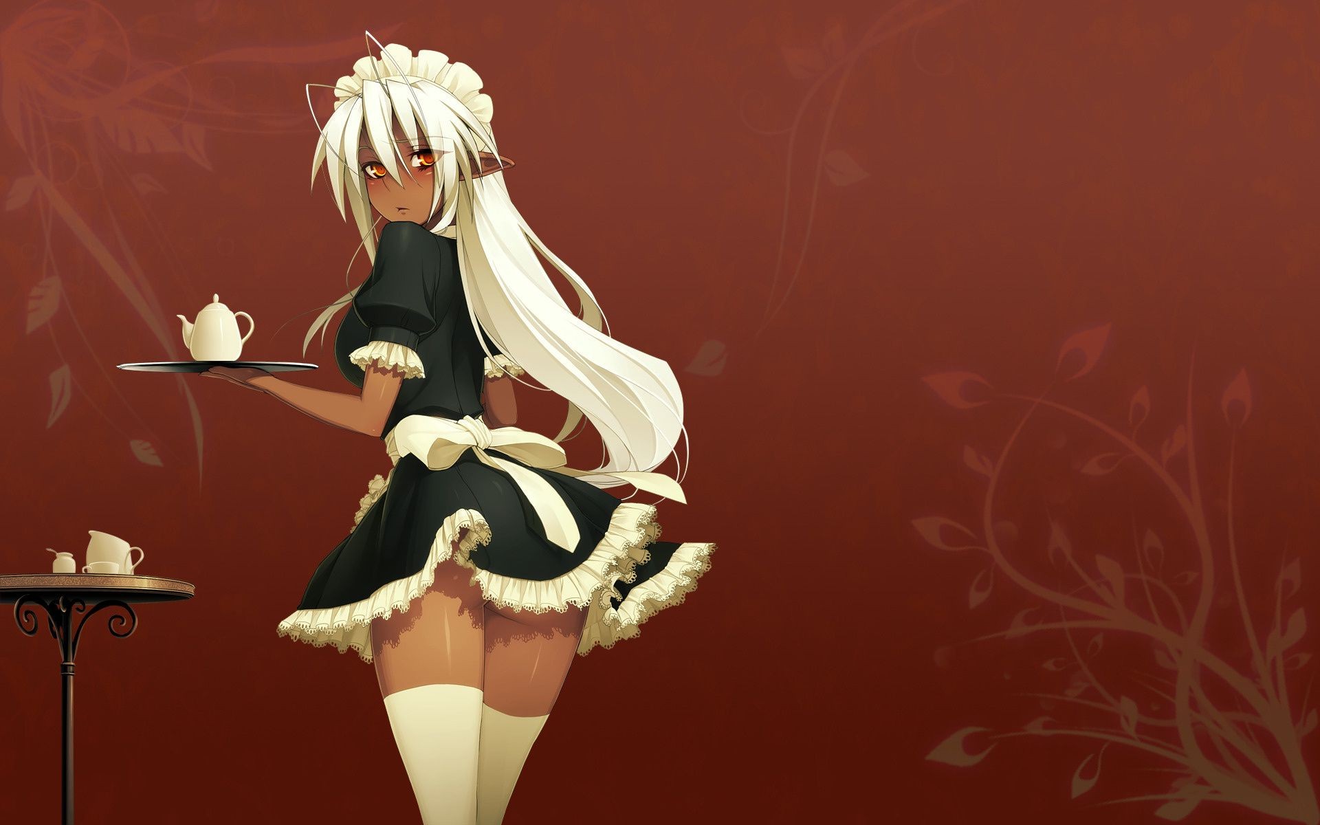 Tepsiye ve su ısıtıcısına sahip güzel hizmetçi