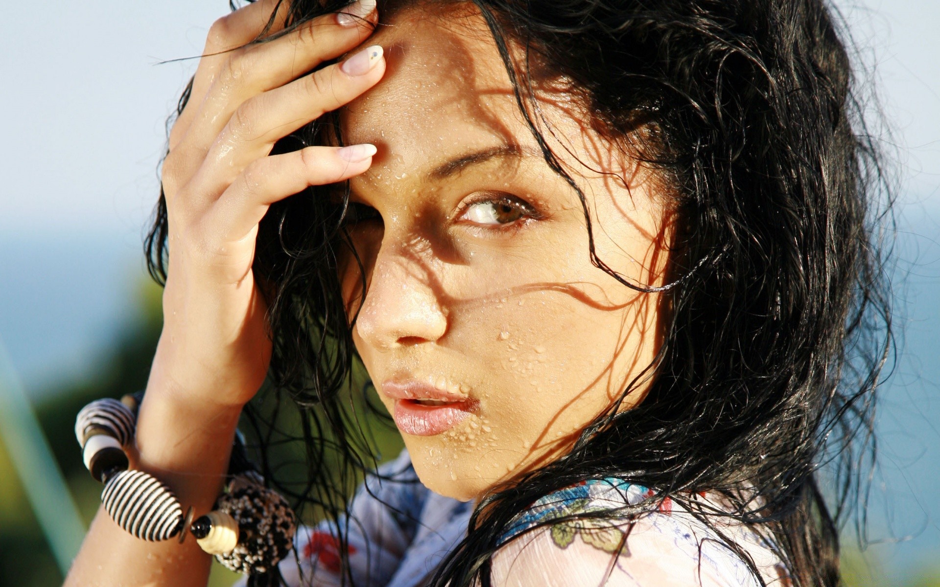 Kızıl saçlı modaya uygun bir kadının portreleri