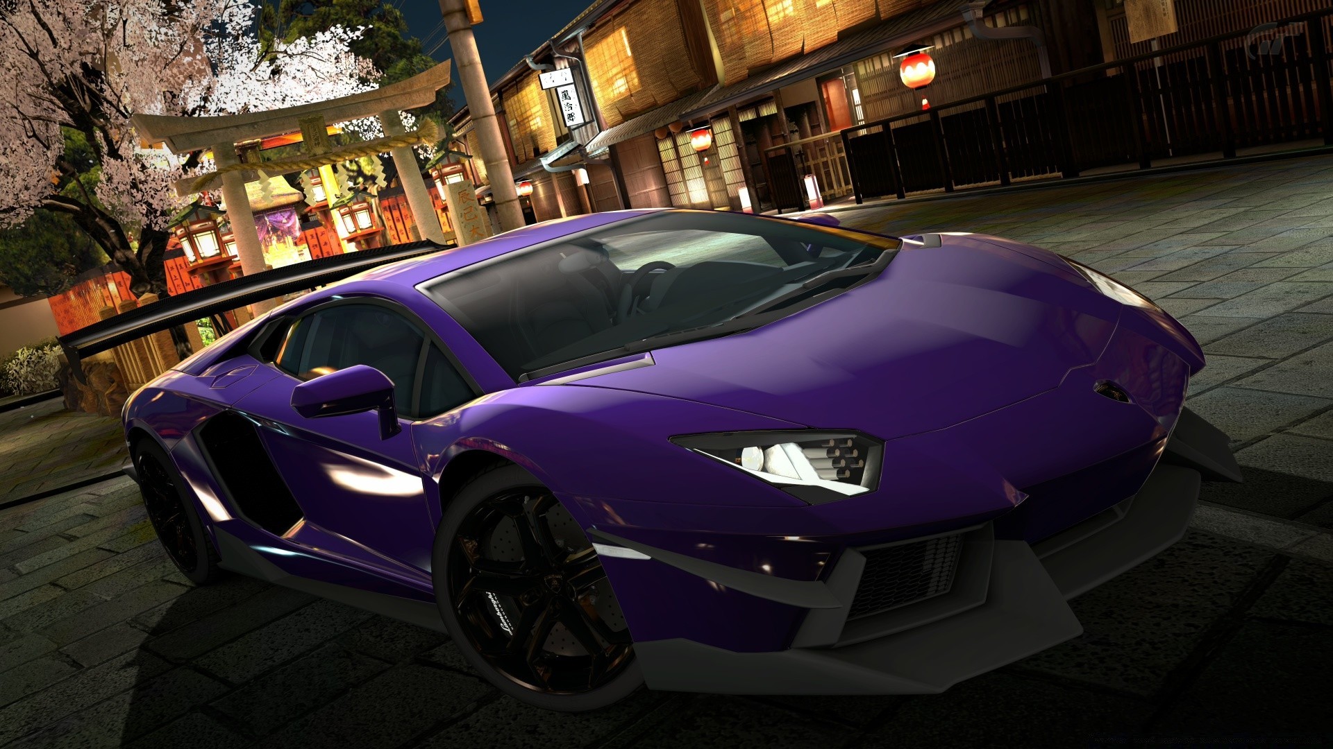 Mor araba, sakura, pagoda ve Çin fenerleri