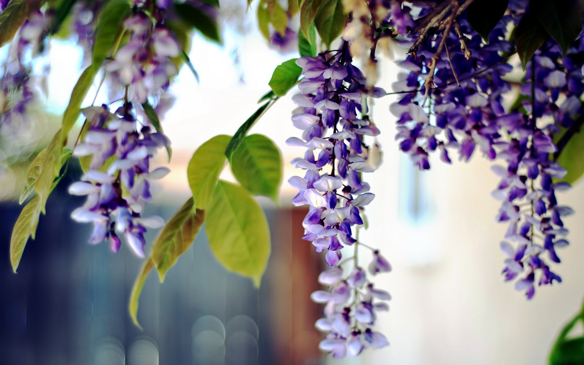 Mor yaprakları olan bir çiçek. Bulanık arka plan