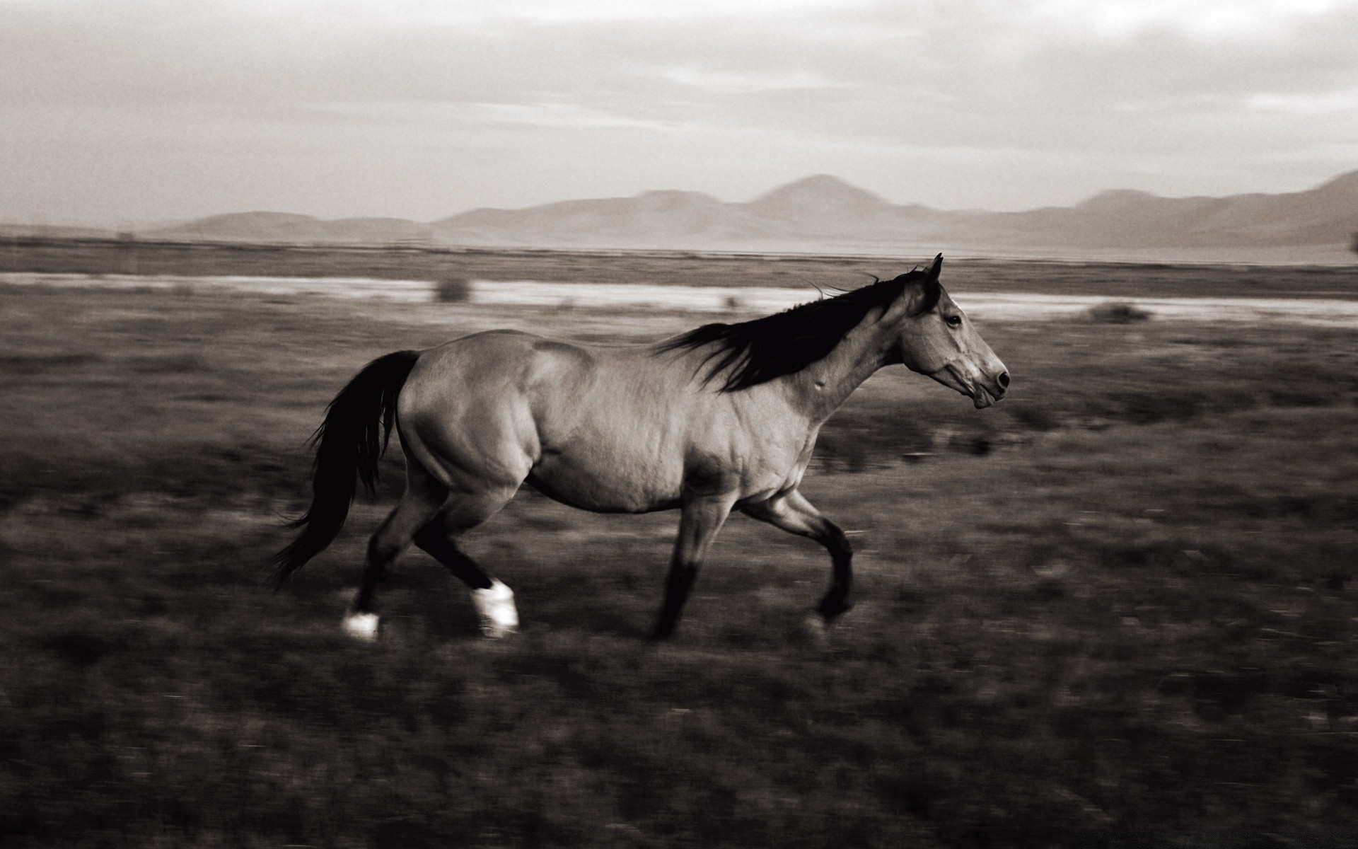 Karanlık at silueti gökyüzünün arka planına karşı yarışıyor