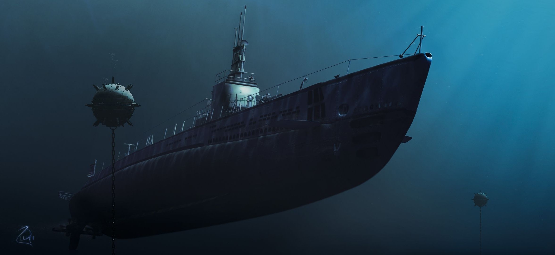 Okyanusun derinliklerinde bir denizaltı