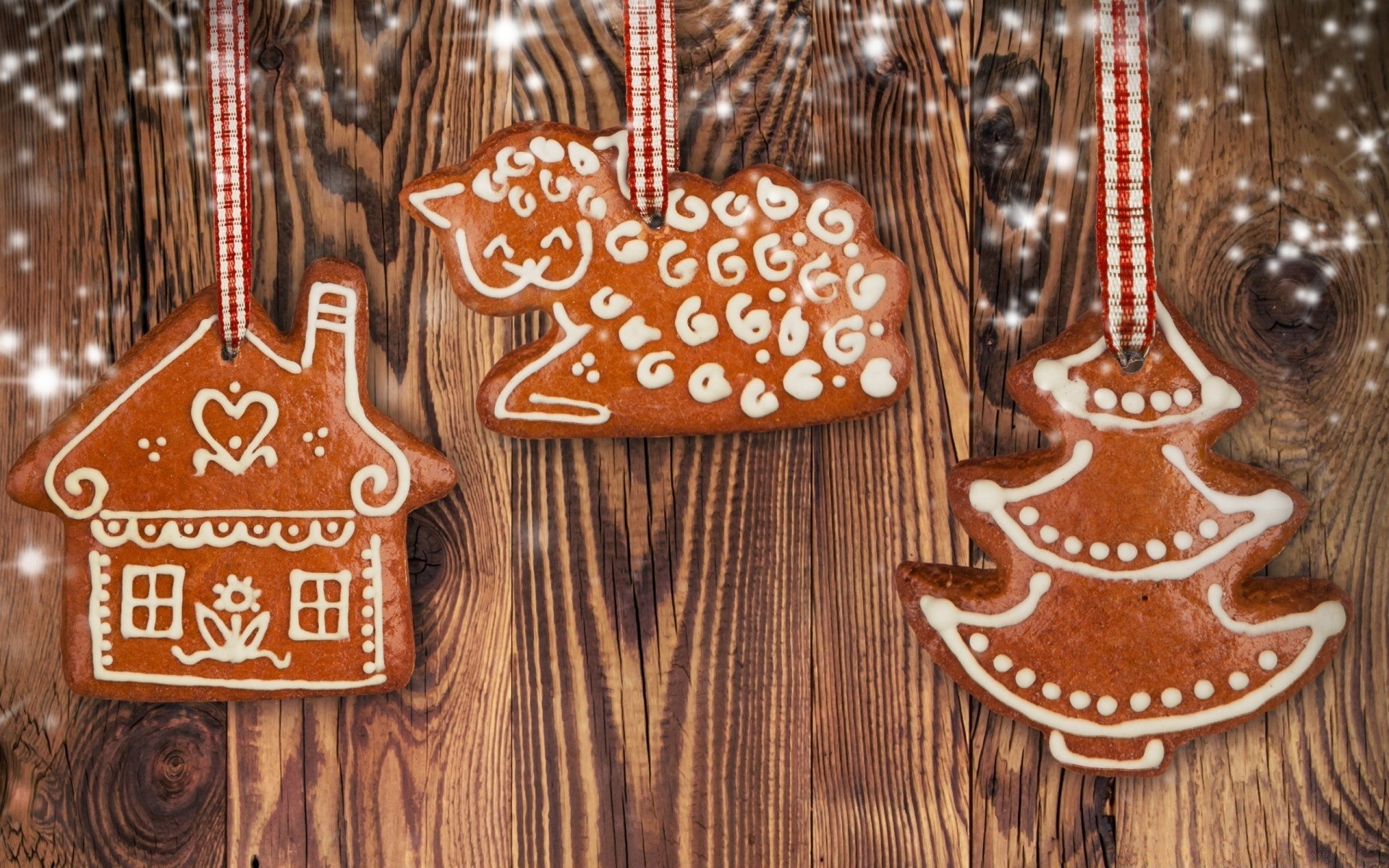 Noel ağacının arka planında pembe yaylarla süslenmiş iğnelerden yapılmış sevimli oyuncaklar