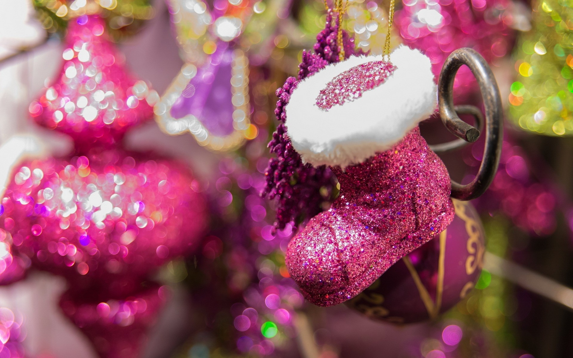 Kartpostal oyuncaklarla Noel ağacının makro fotoğrafçılığı