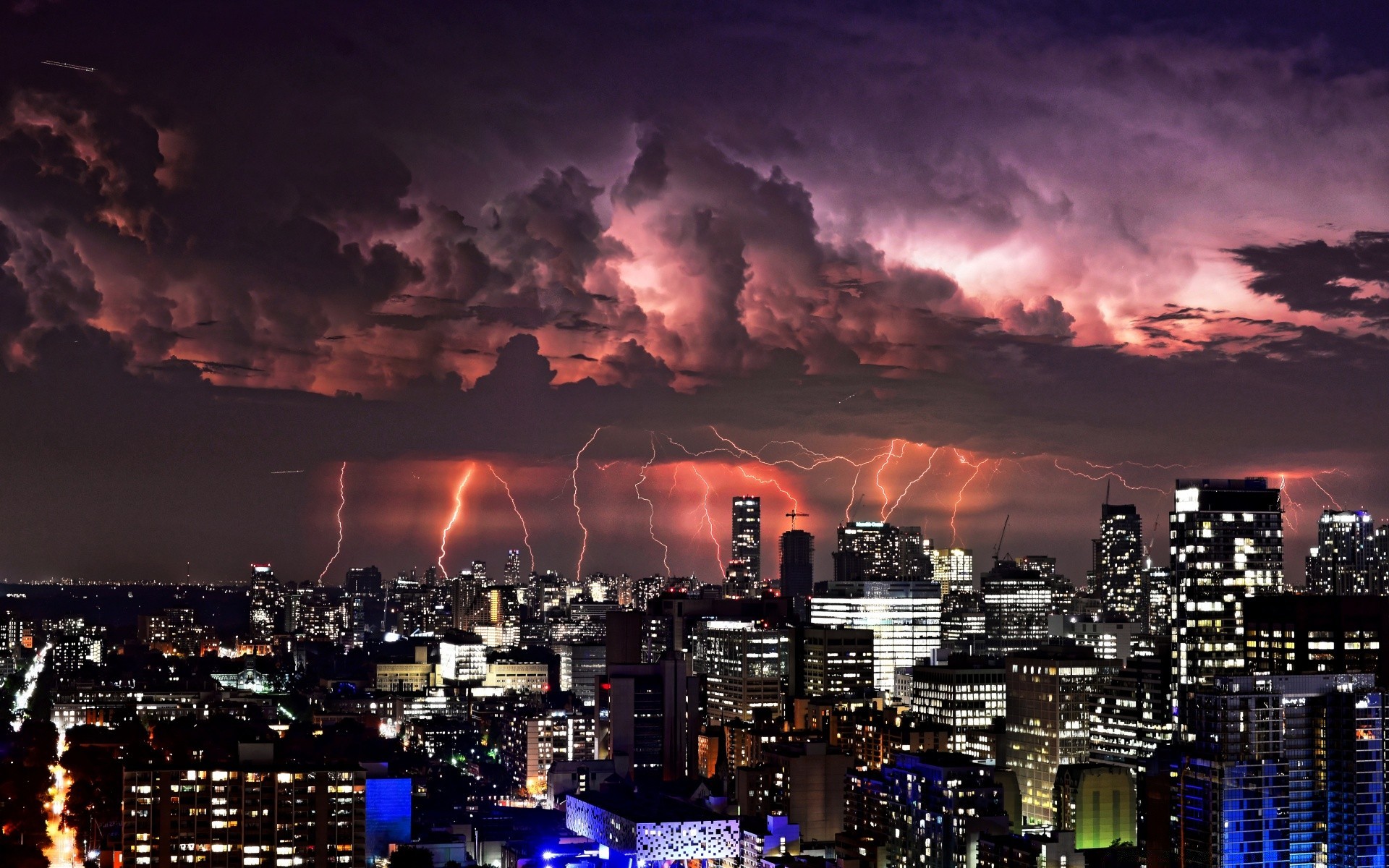 Gökdelenlerin ortasında gecenin parlayan kulesi