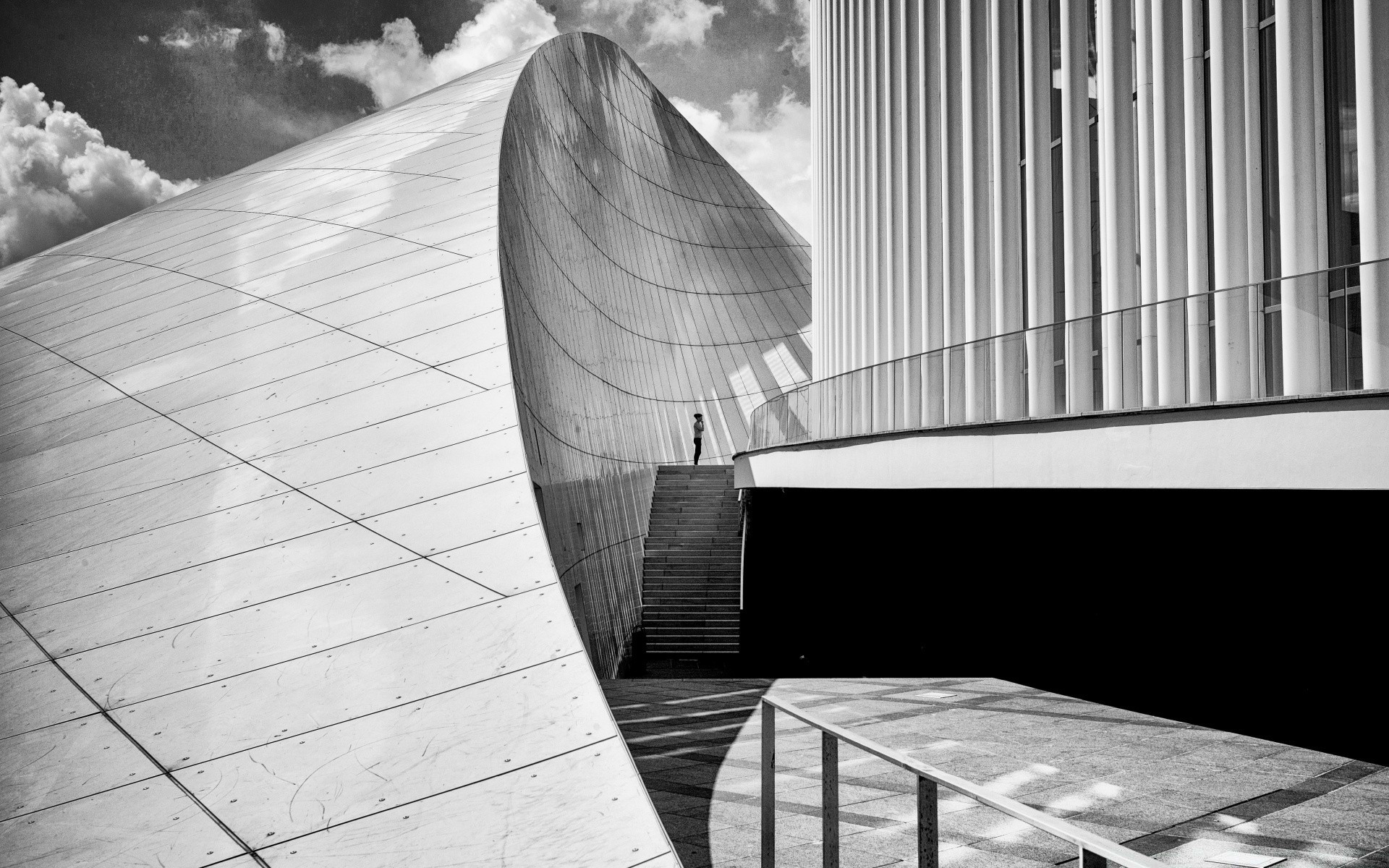 Tek renkli renkte akan mimari çizgiler