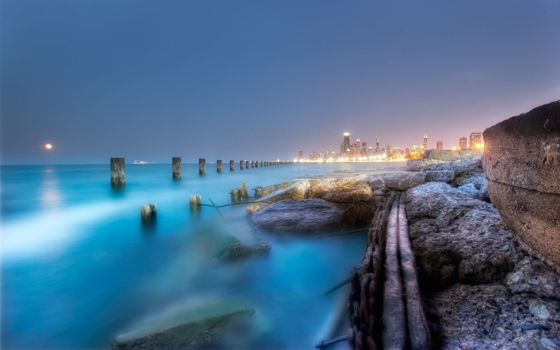 Parlayan bir şehrin zeminine karşı sisli iskele