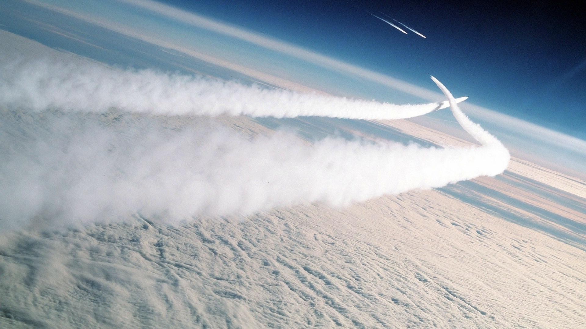 Birkaç uçak akrobasi figürünü gerçekleştiriyor
