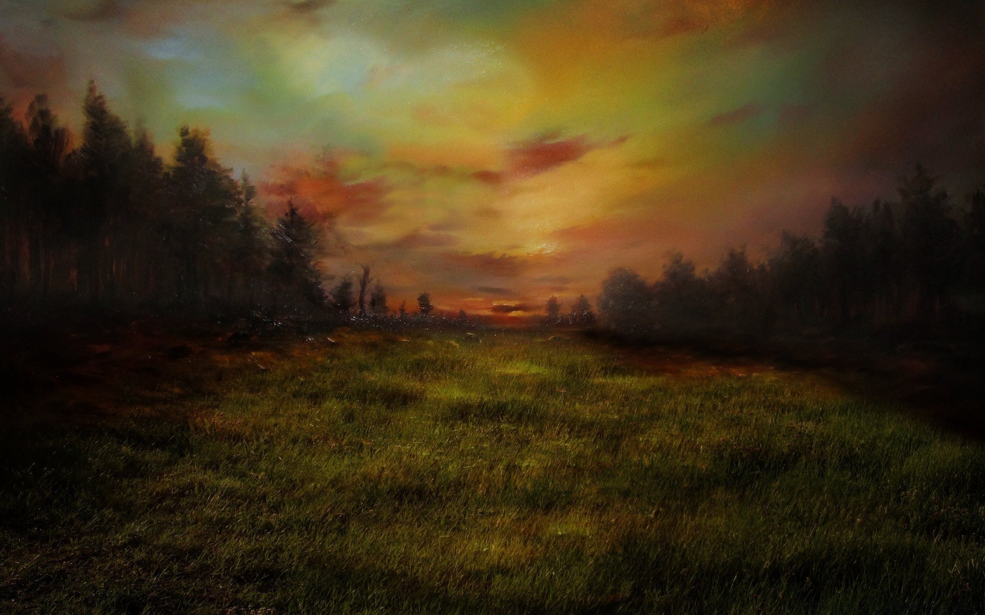 Ormanın arka planına karşı akşam gün batımının manzarası