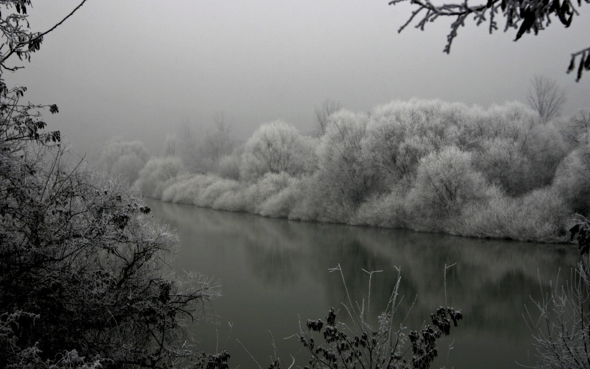 Mavi gökyüzüne karşı kış donmuş ormanı