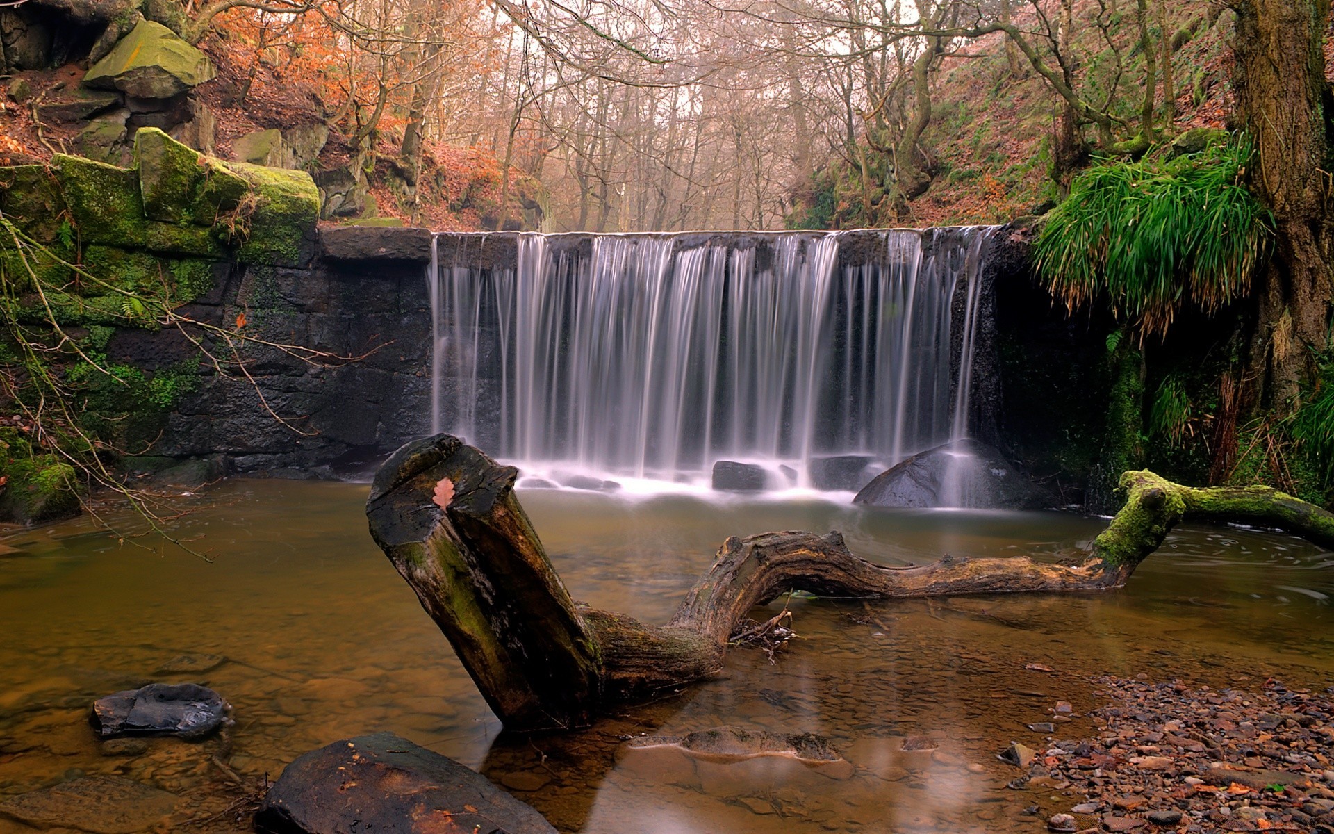 Sonbahar ormanında fırtınalı bir nehrin resmi