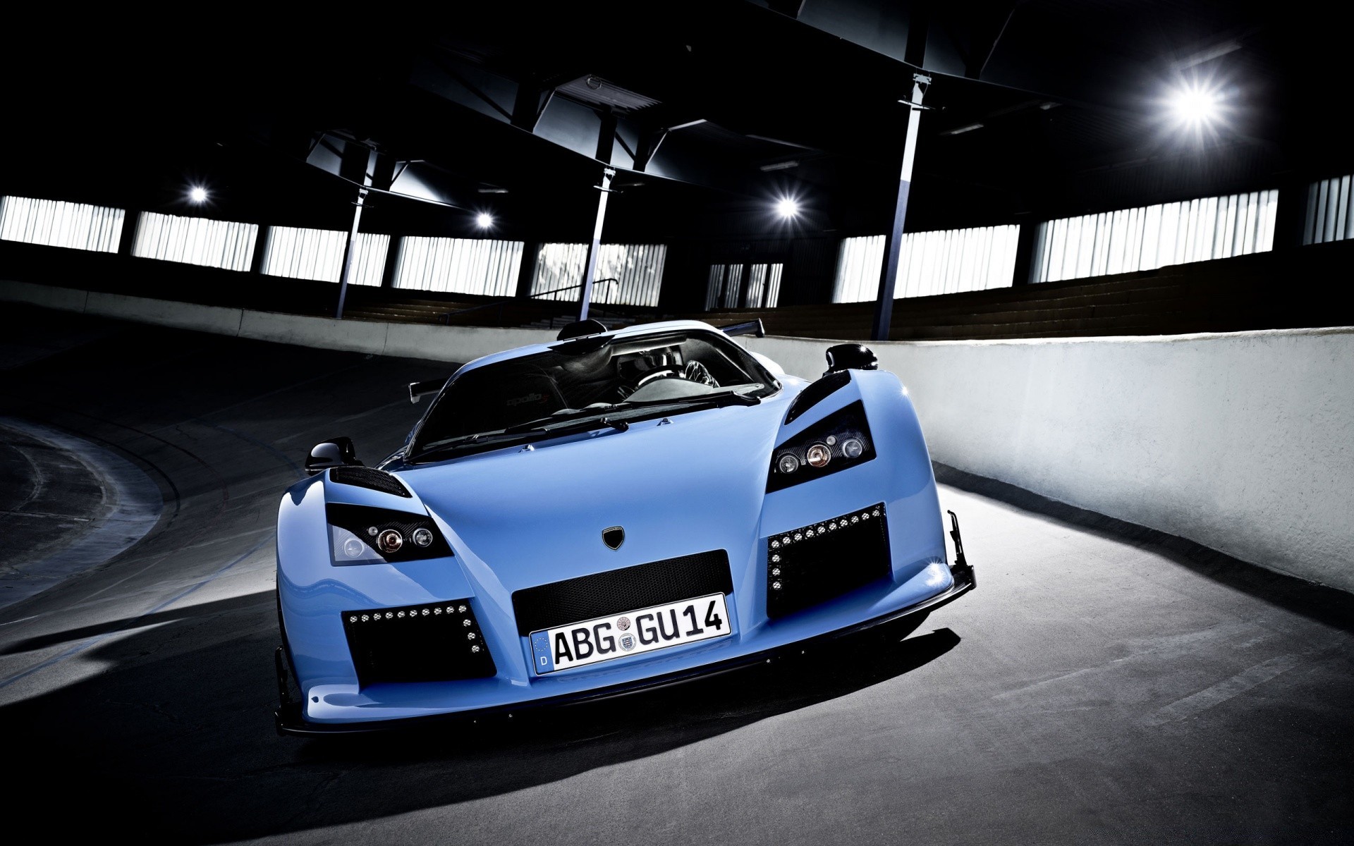 Kasvetli tüneldeki mavi araba