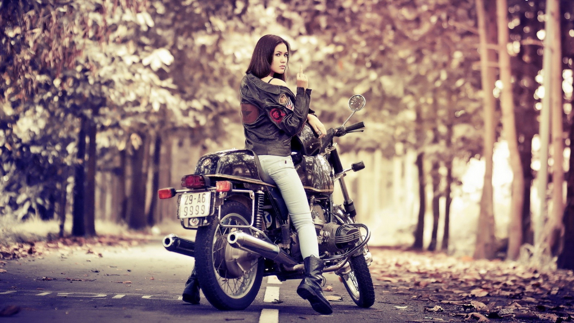 Ormanda motosikletli genç kız