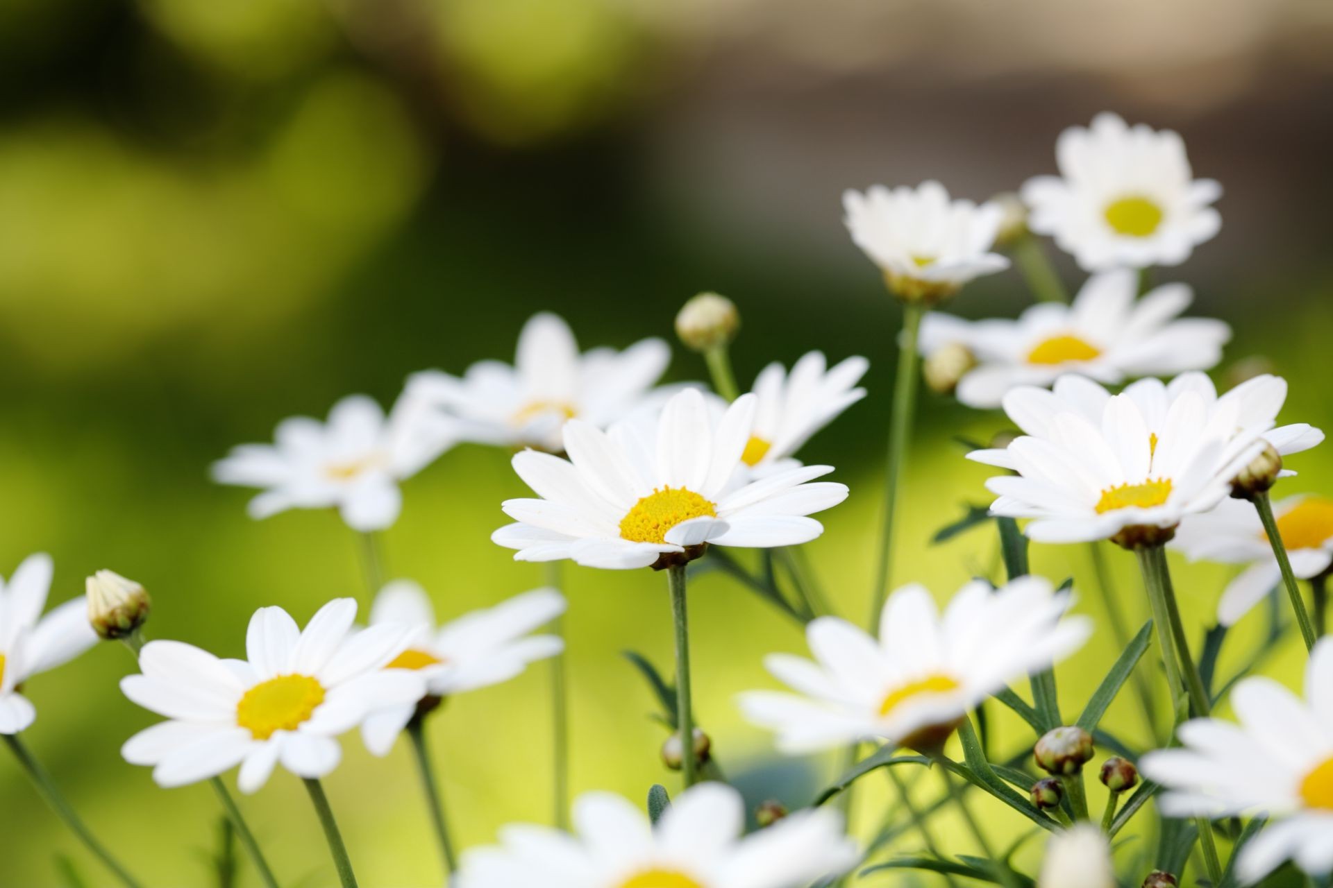 Yeşil bir arka plan üzerinde çiçekli papatyalar