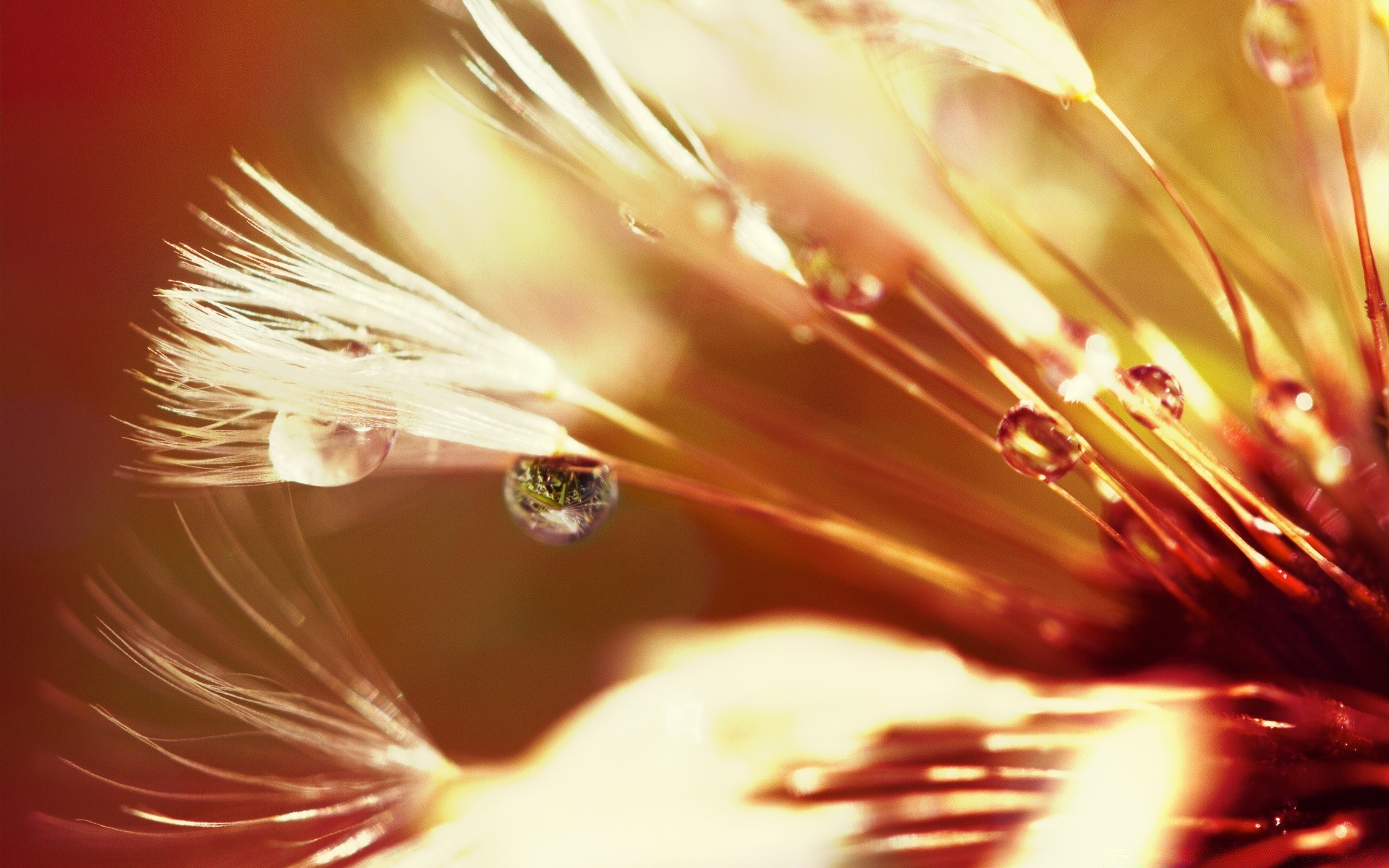 Çiçekte çiğ damlalarının makro fotoğrafçılığı