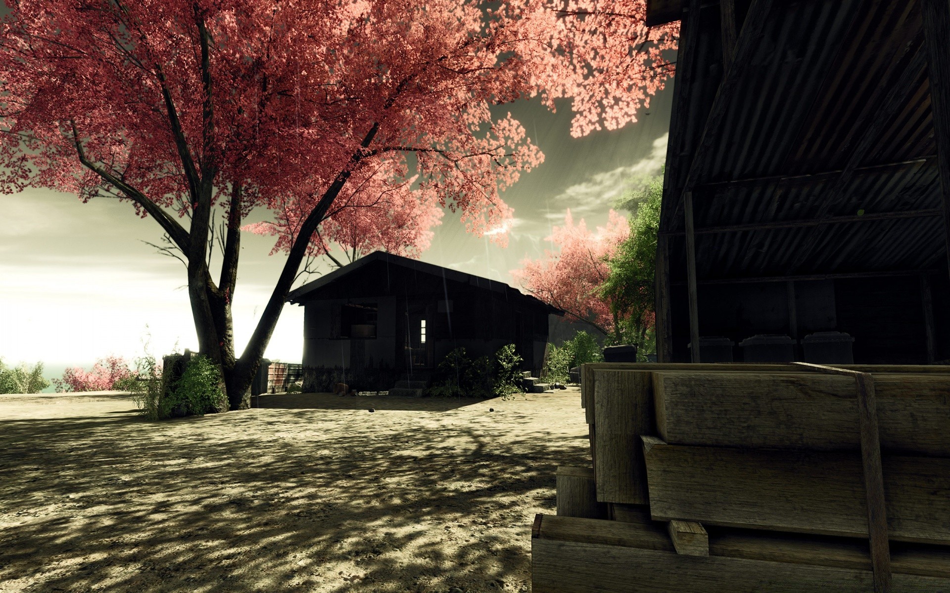 Bilgisayar oyunu, ormanın arka planındaki ev