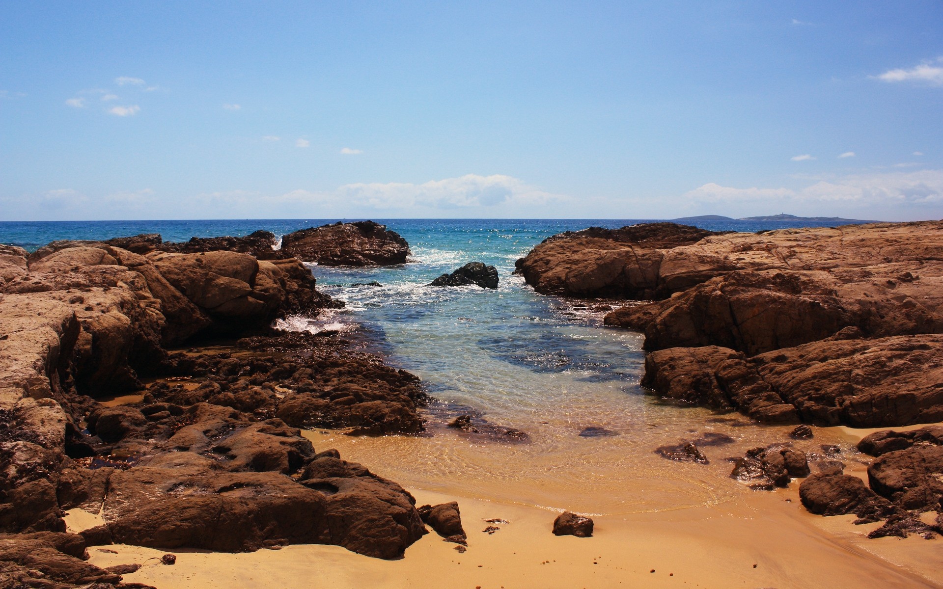 Terk edilmiş bir plaj. Okyanusun yanındaki tarlada