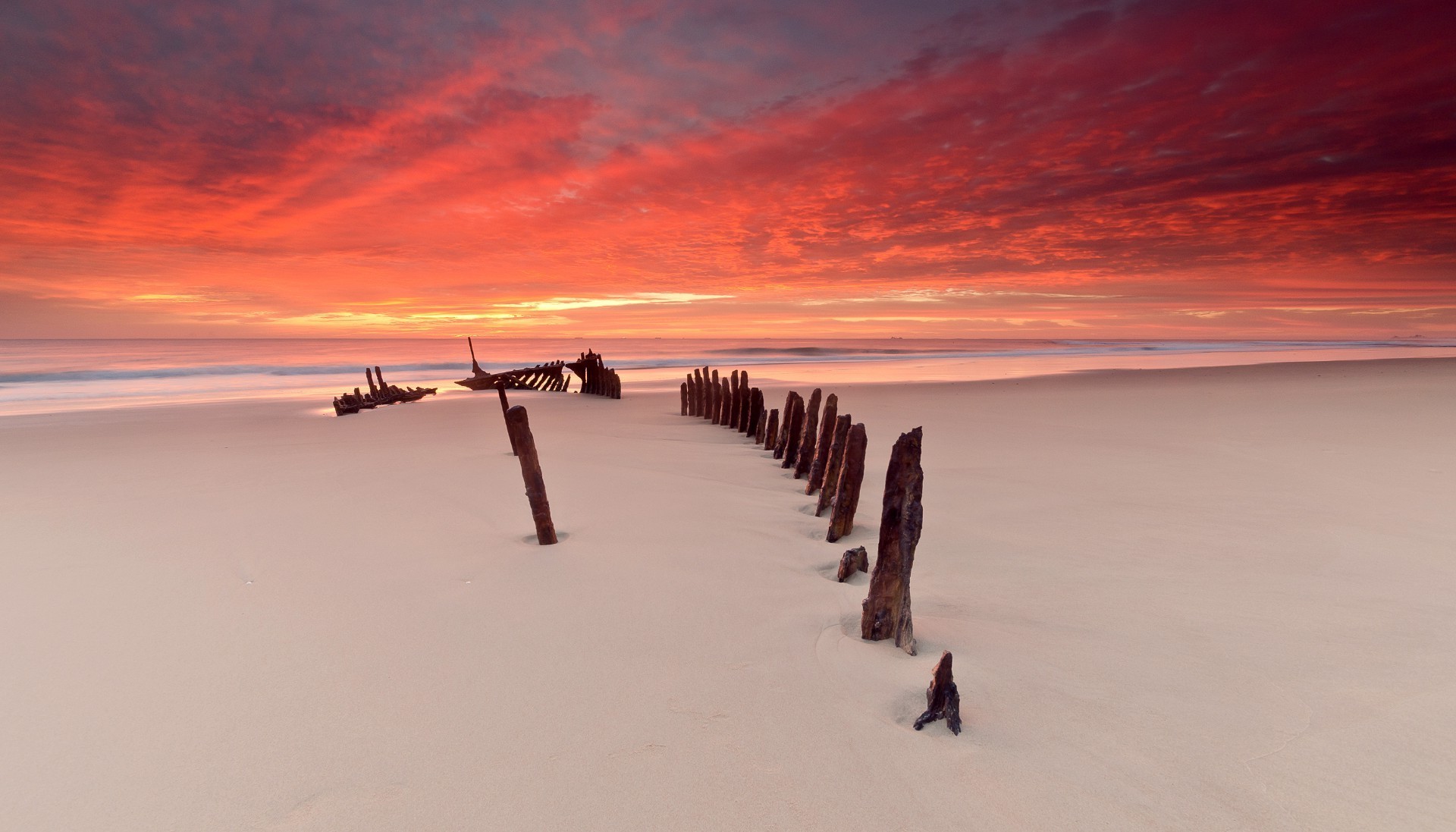 Kumlu plajın üzerinde gün batımı
