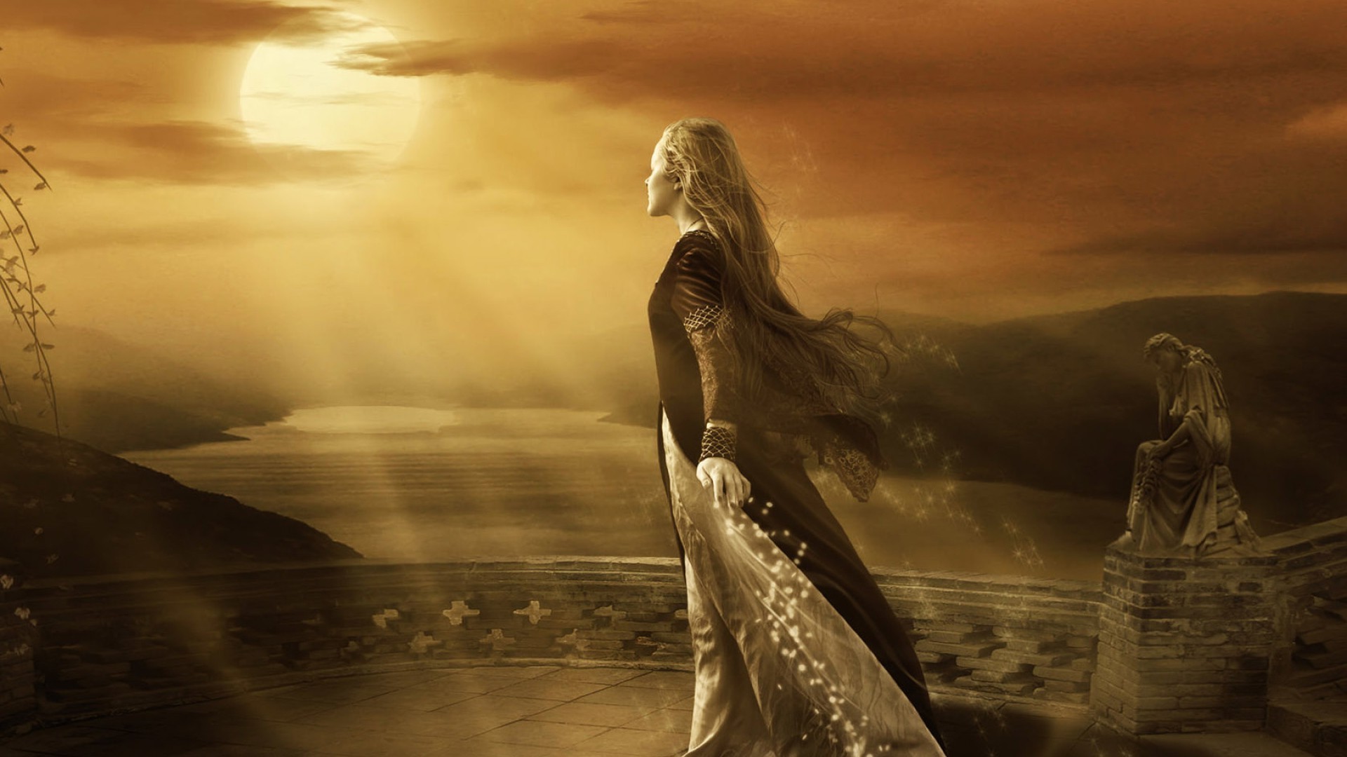 Gün batımının ışığında bir heykel gibi duruyor güzel bir kadın