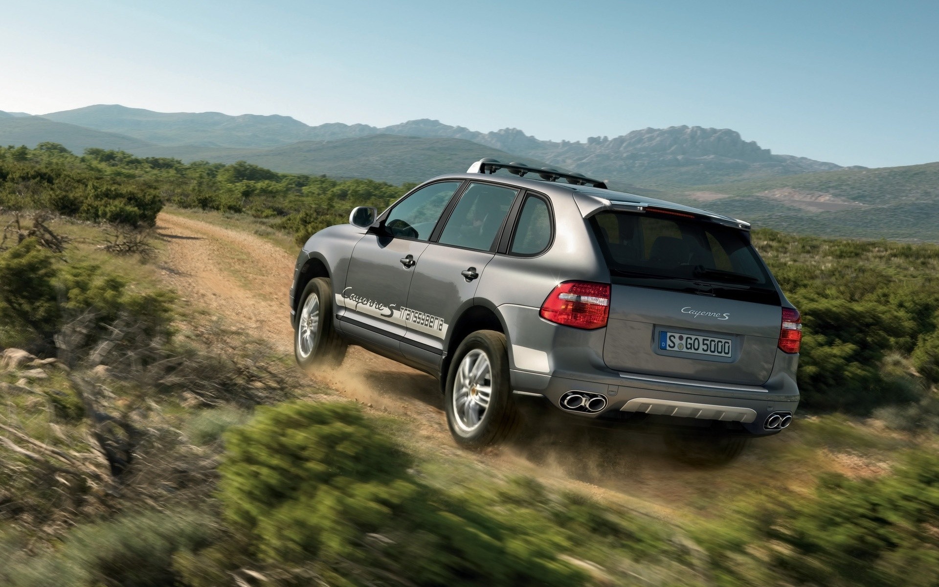Şehirde sonbahar yapraklarının arka planına karşı Porsche