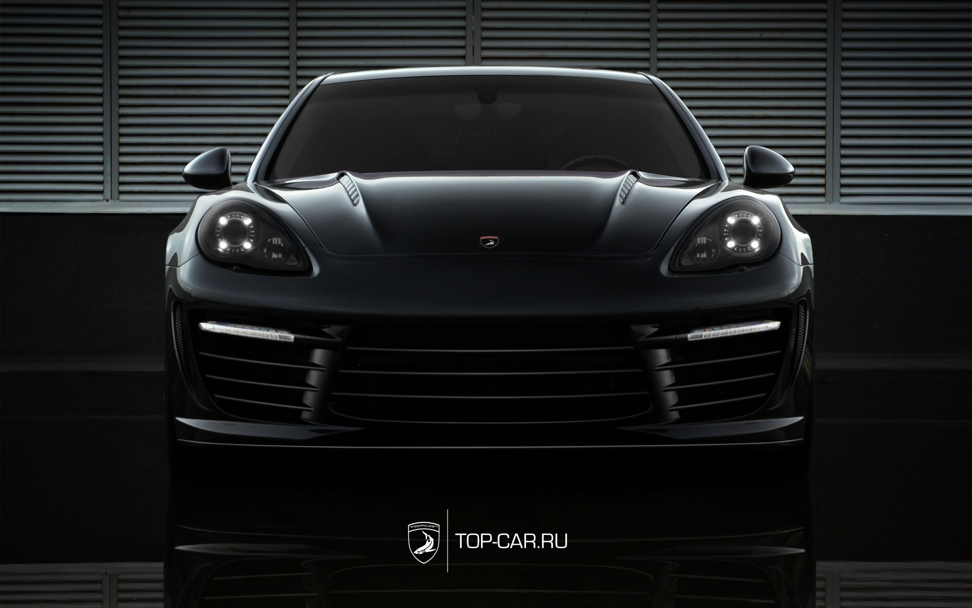 Kumdaki palmiye ağaçlarının arasında Porsche panamera