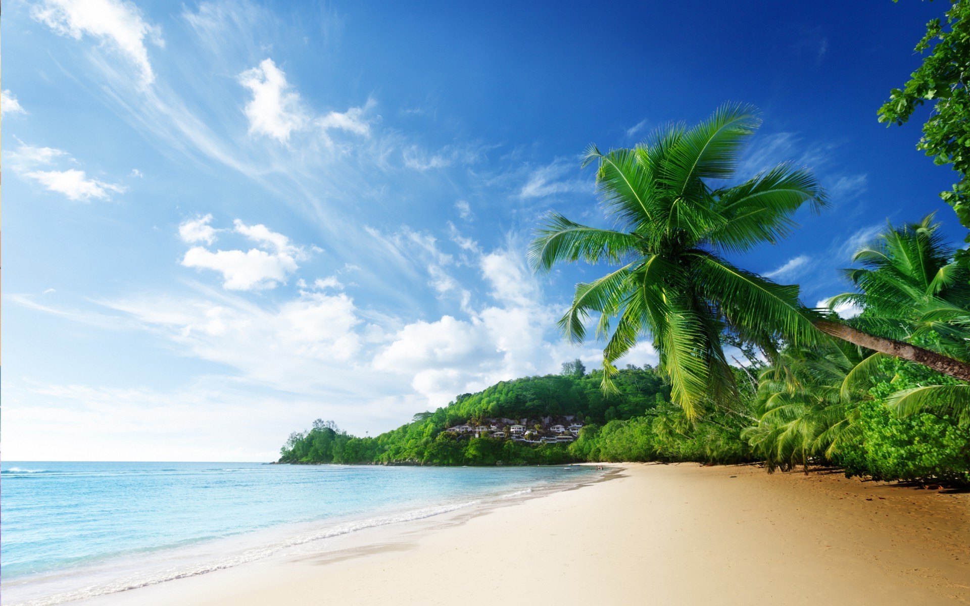 Palmiye ağaçlarıyla tropikal deniz plajı