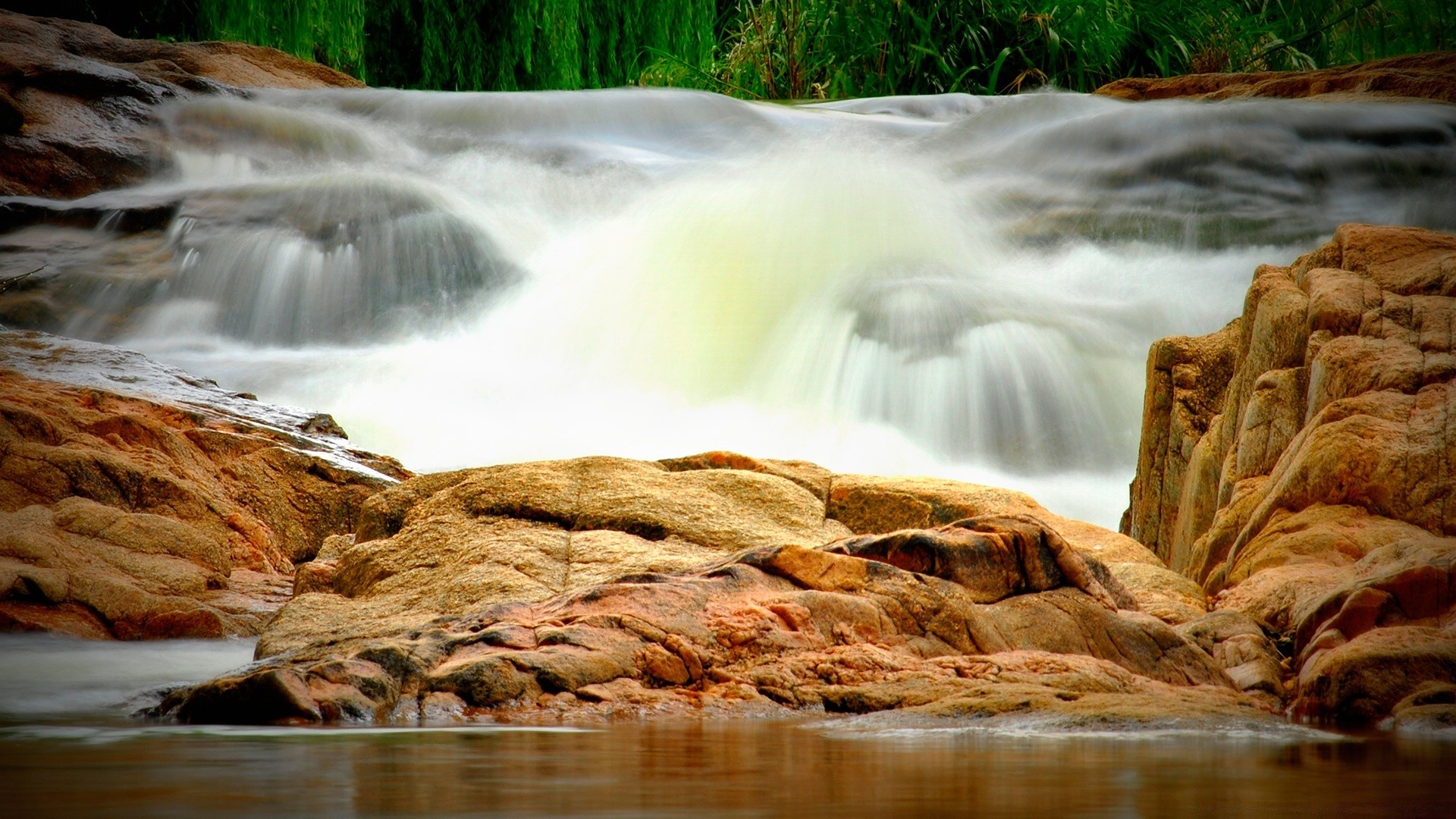 Kayaların üzerinde şelale bulunan sonbahar manzarası