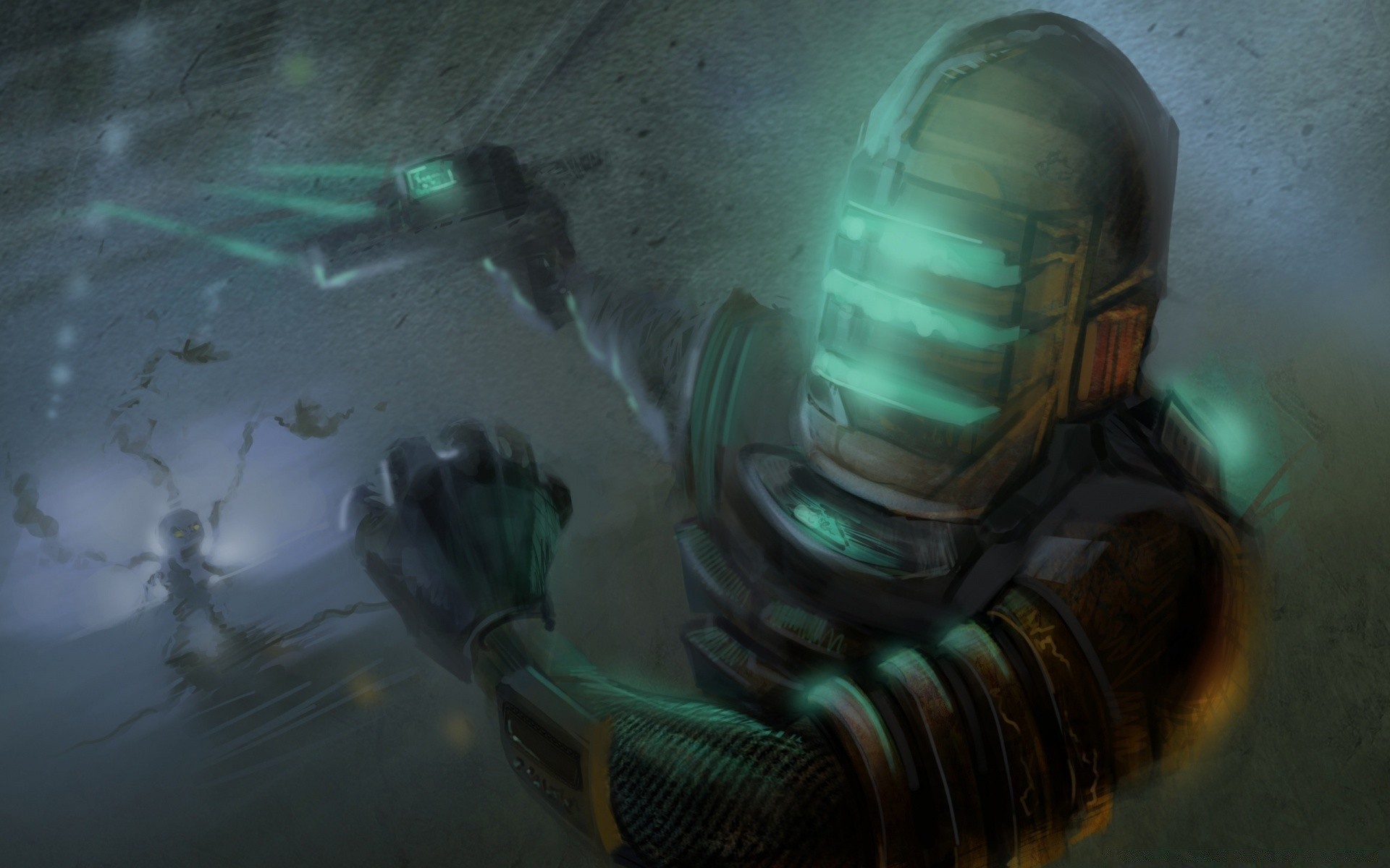 Dead space. Bulanık arka plana sahip oyun görüntüleri