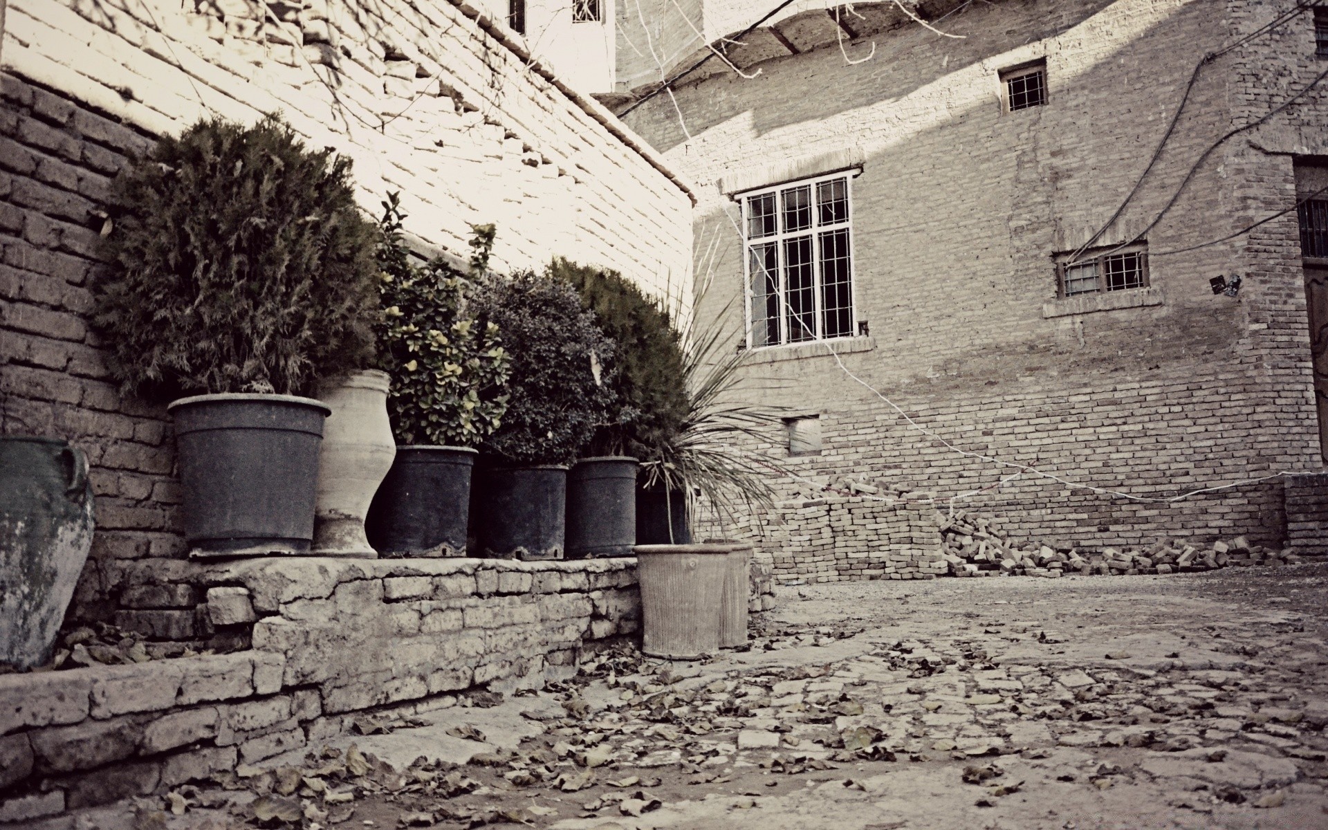 Evin eski mimarisinin tek renkli bir görüntüsü