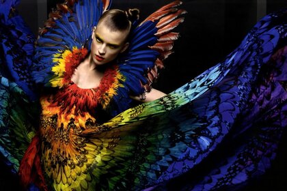 Renkli elbiseli parlak model