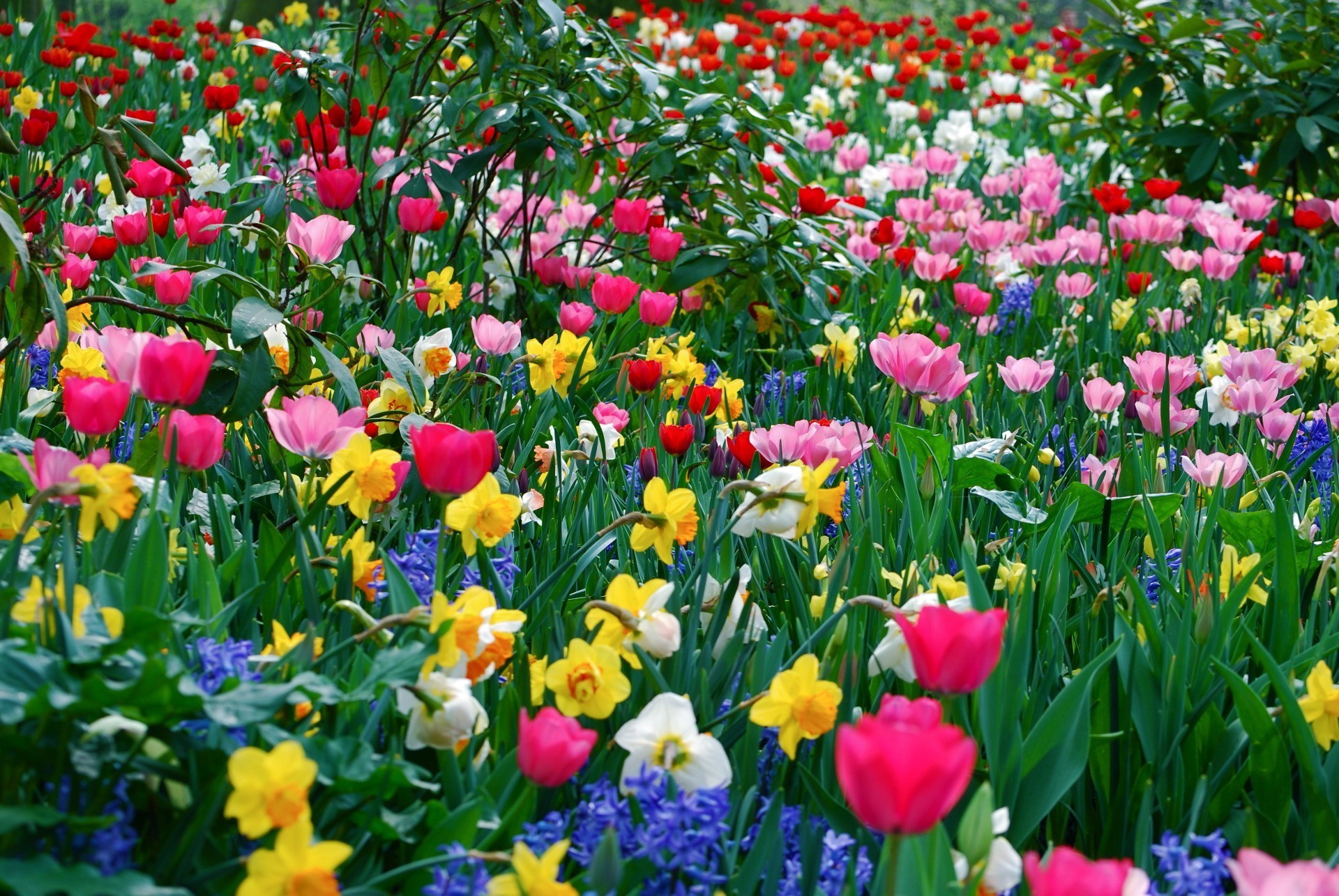 Renkli lalelerle alanın fotoğrafı