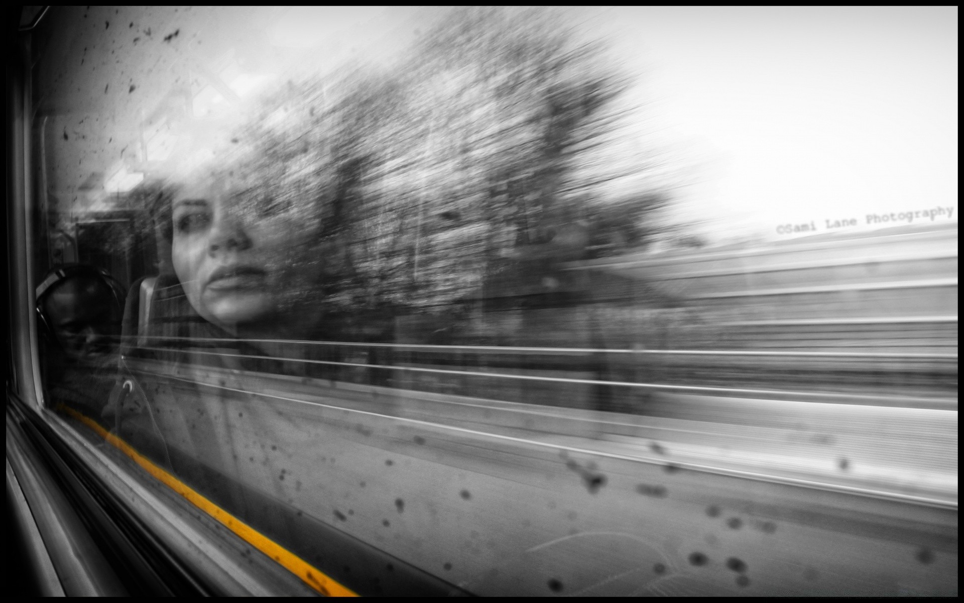 Caddenin bulanık, siyah-beyaz resmi ve camdaki ışık