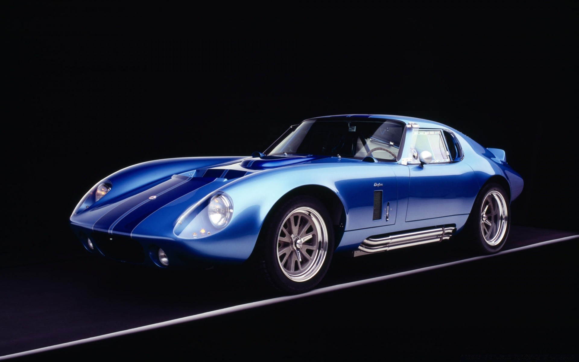 Siyah bir arka plan üzerinde mavi bir retro araba