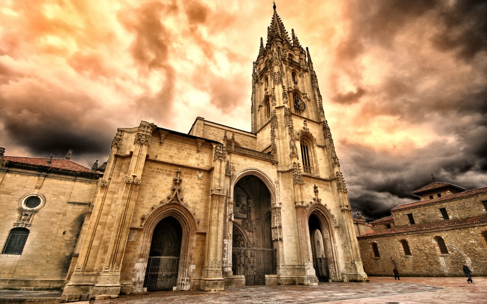 Mavi gökyüzünün arka planına karşı eski bir kilise