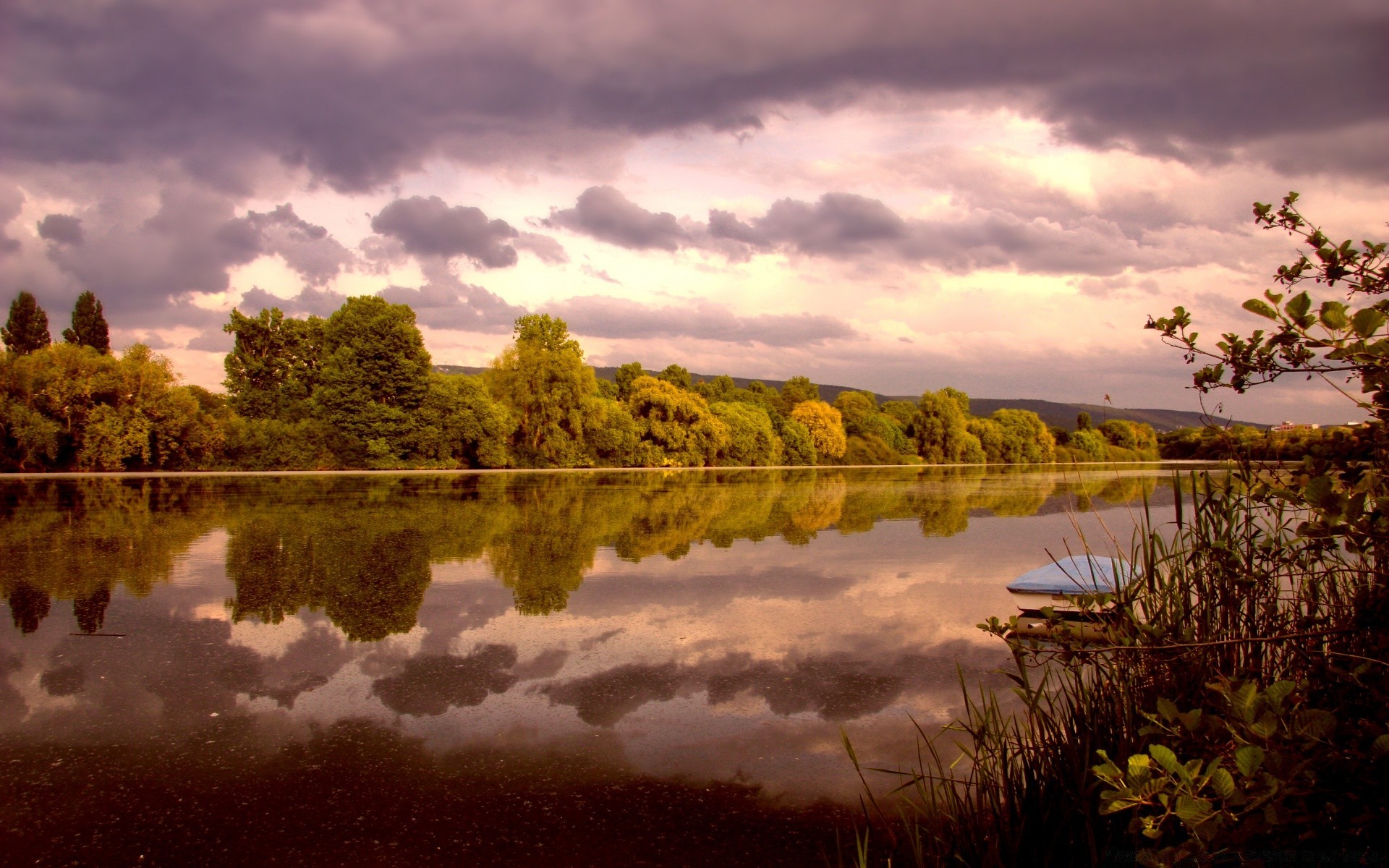 Nehrin üzerinde sıra dışı bir gökyüzüne sahip güzel bir manzaraNehrin üzerinde sıra dışı bir gökyüzüne sahip güzel bir manzara