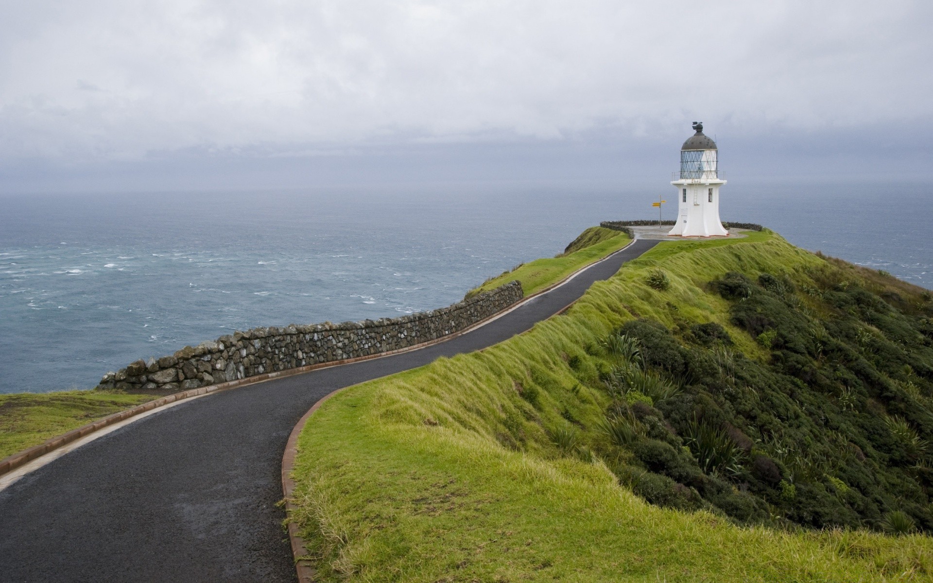 Deniz kenarında bir fenerle pitoresk manzara