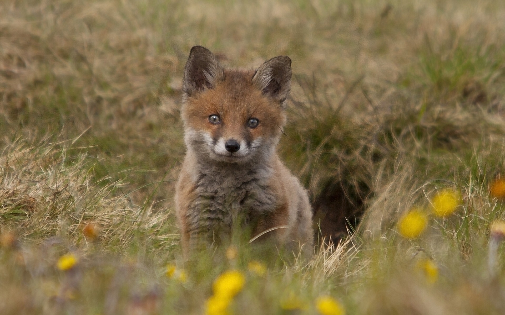 Tilki, çimenlerin arkasından hücreye bakıyor