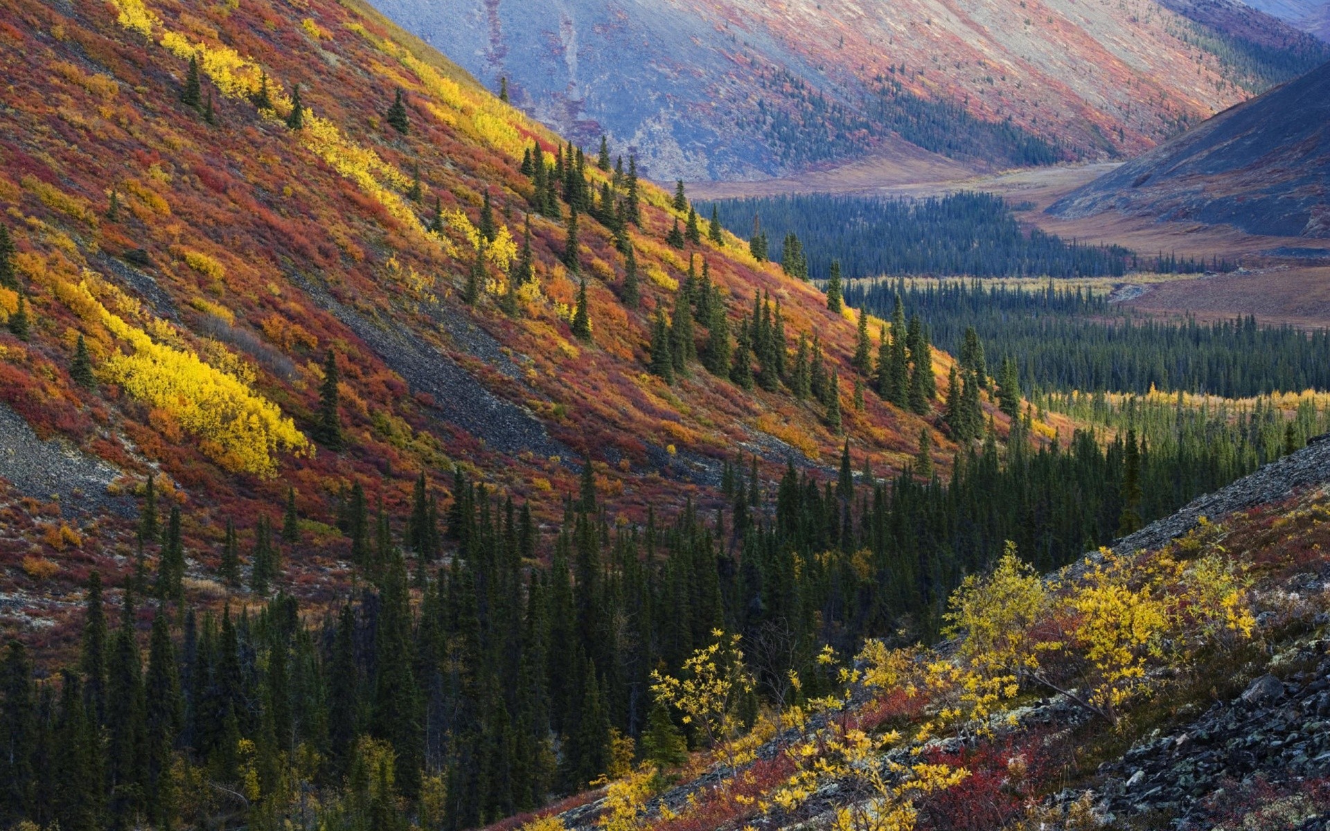 Sonbahar ormanından aşağıdan yukarıya doğru ağaçların tepeleriSonbahar ormanından aşağıdan yukarıya doğru ağaçların tepeleri