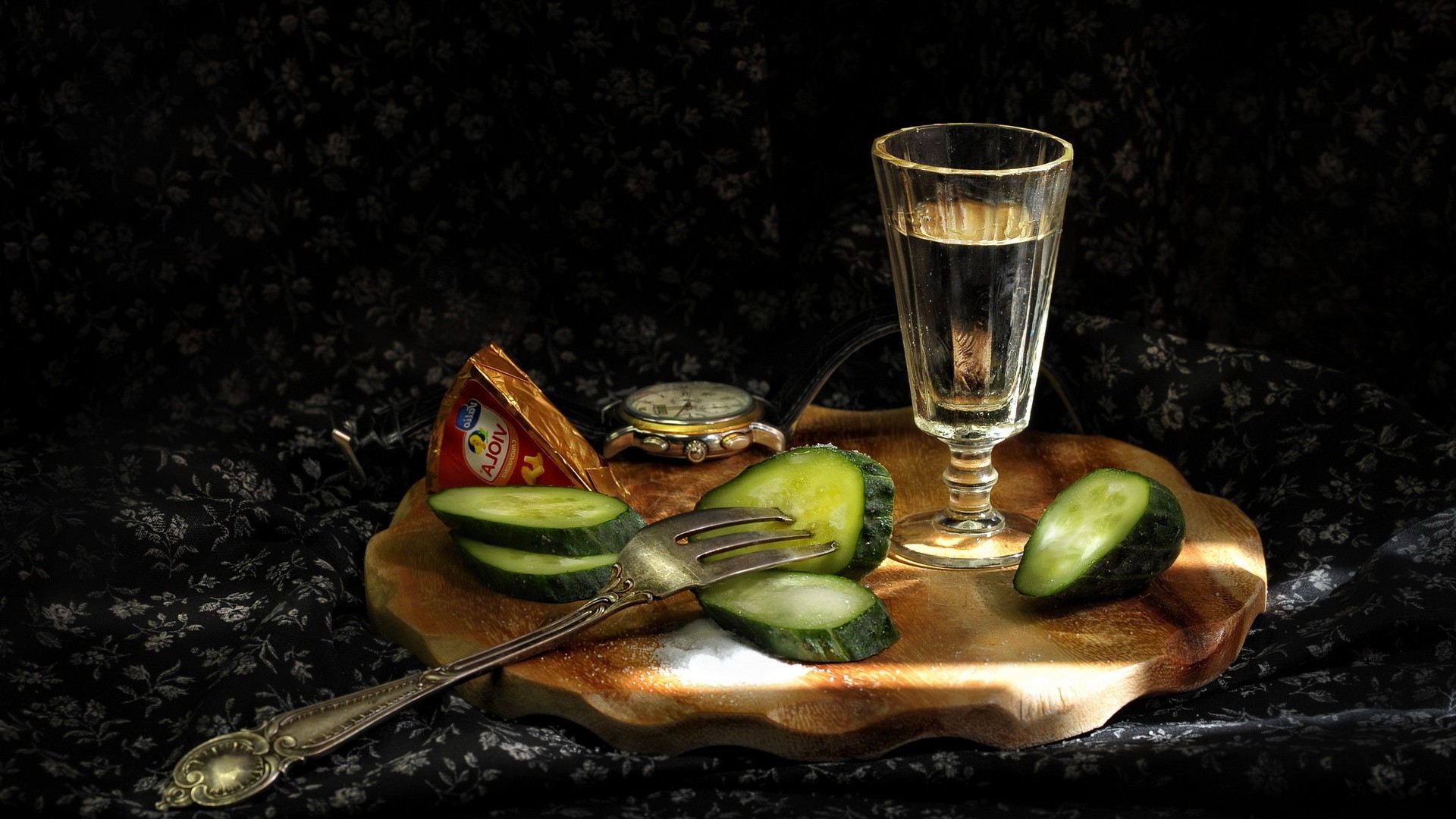 Salatalık ve peynirli bir bardak votka
