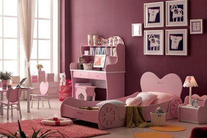 Pembe renklerde çocuk odası