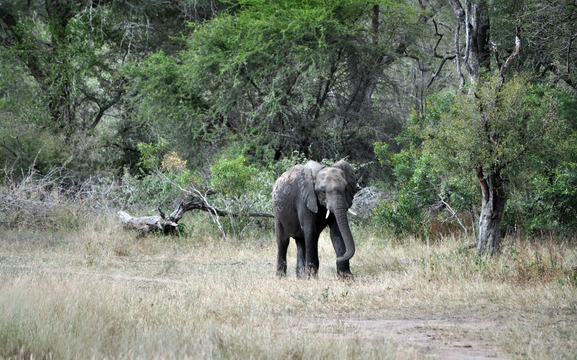 Fil sulama deliğine acele ediyor. Ormandaki memeli