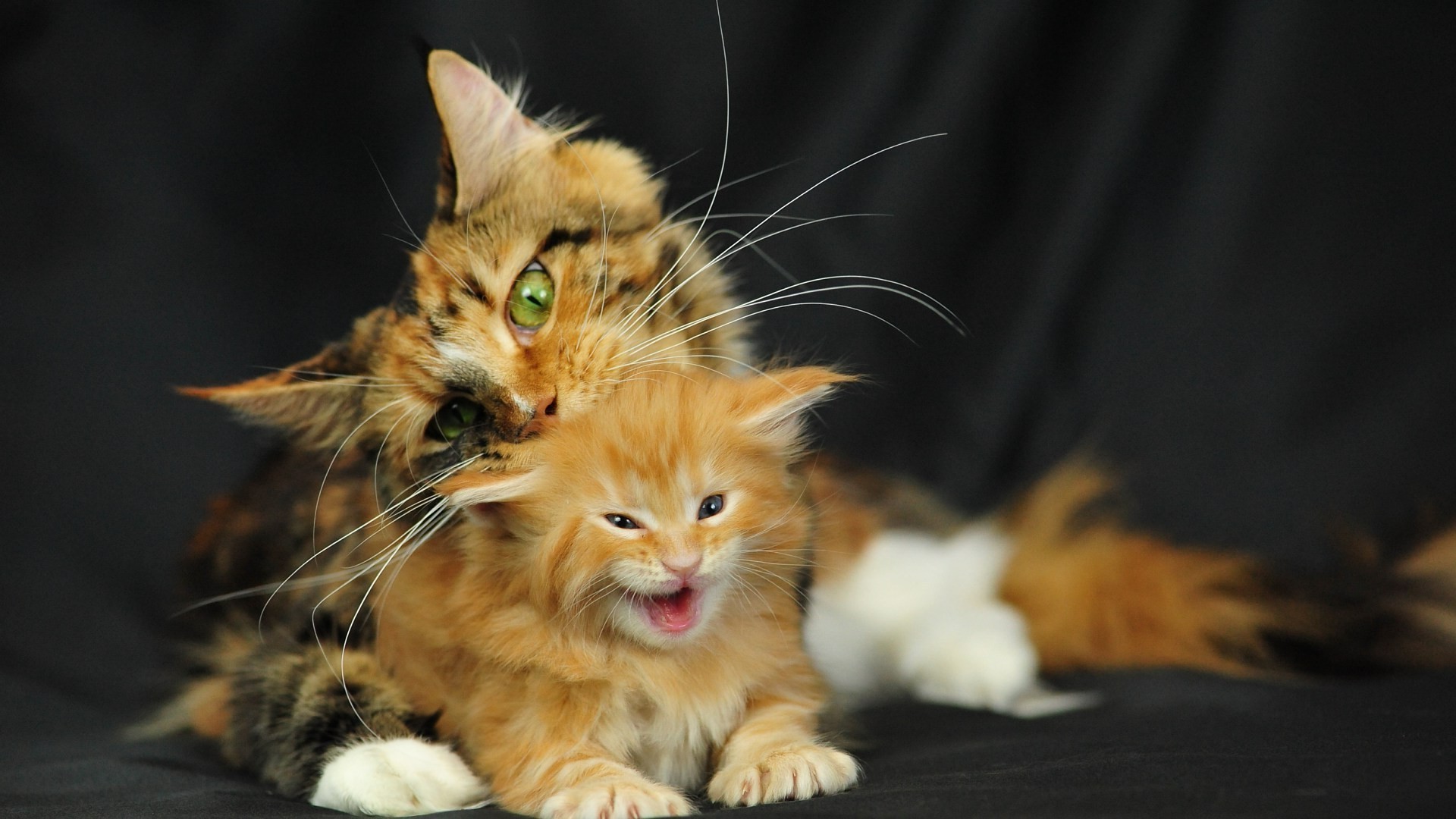 Karanlık bir arka plan üzerinde sevimli kediler