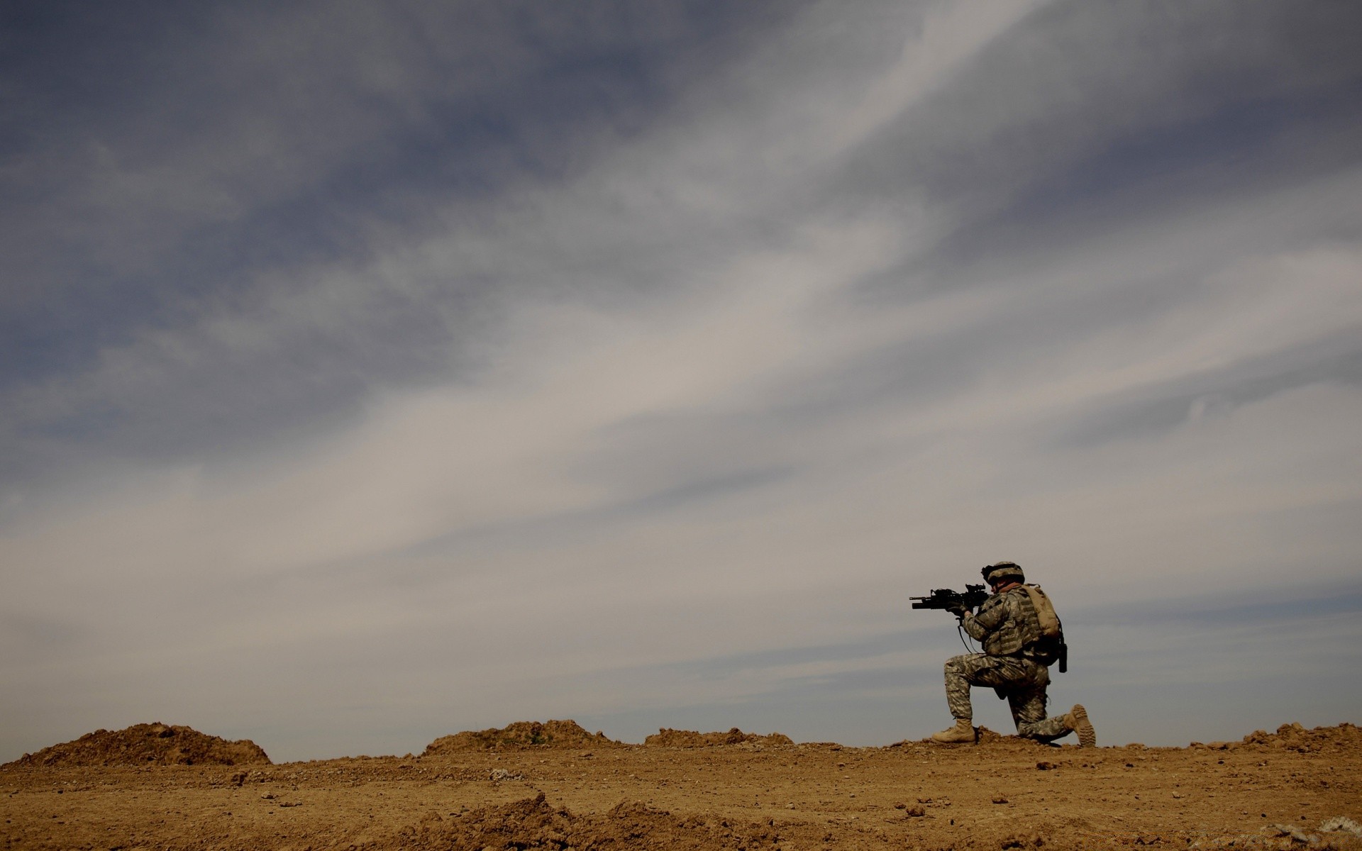 Piyadeden bir adam kumlu arazide duruyor