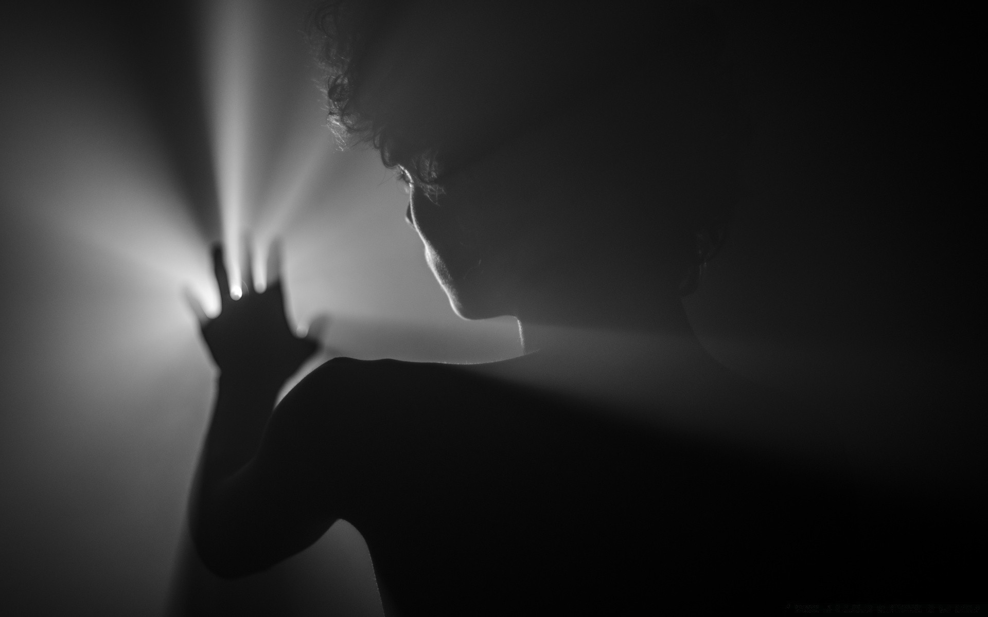 Elini kapatan ışık kaynağının silueti